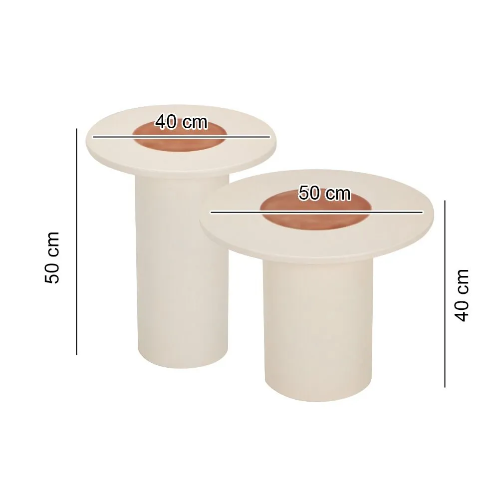 الطاولة الكبيرة: القطر 50 - الارتفاع 40 الطاولة الصغيرة : القطر 40 - الارتفاع 50 سم |