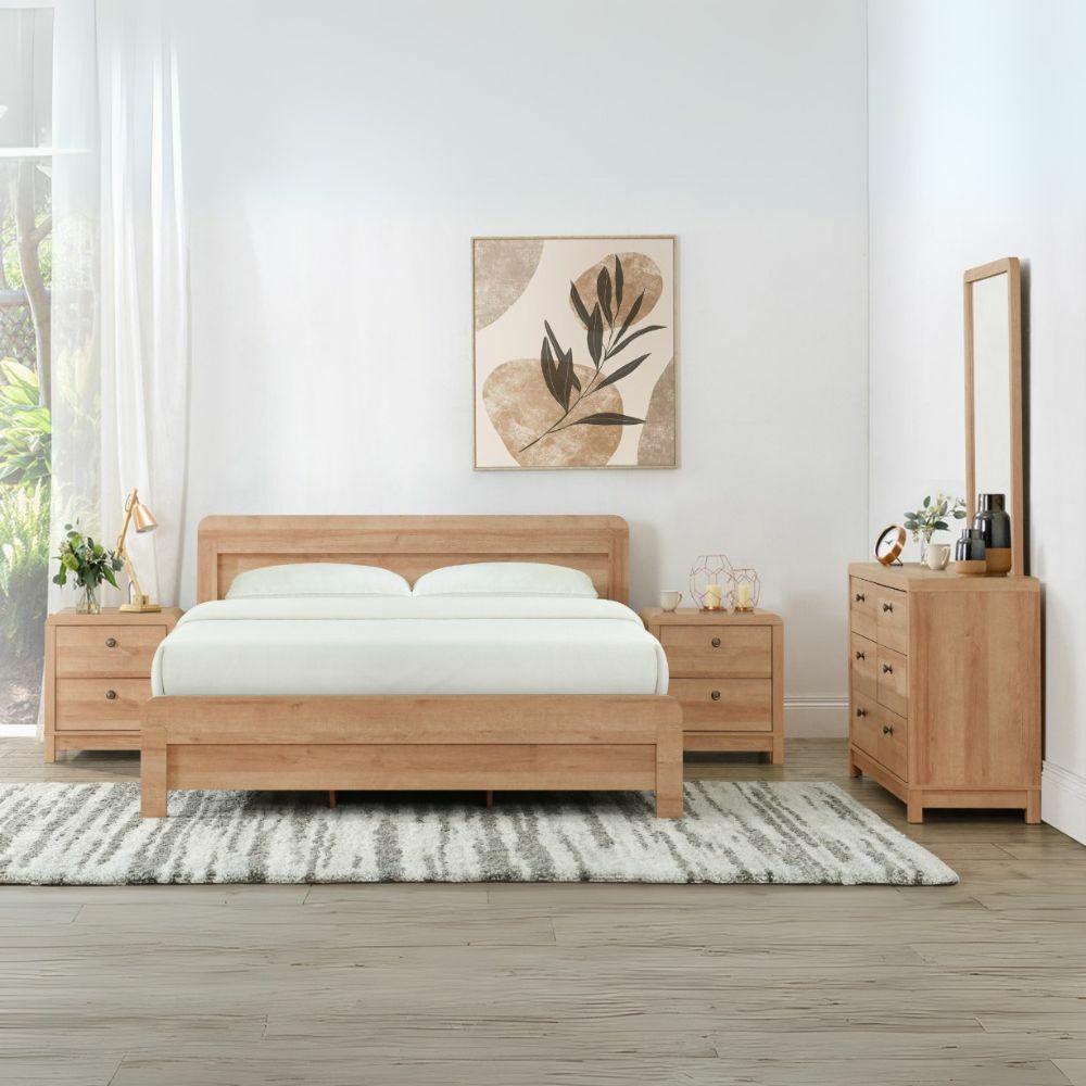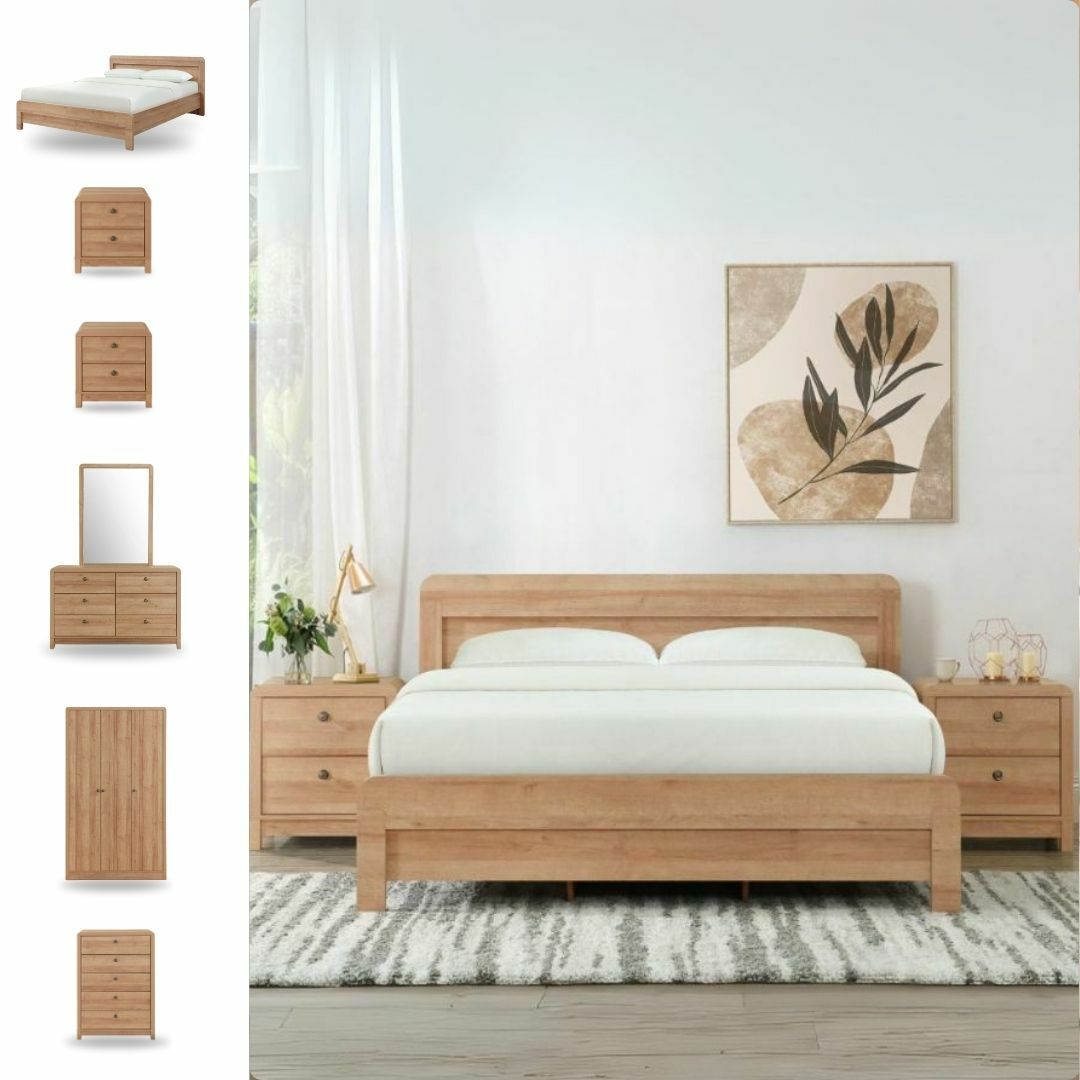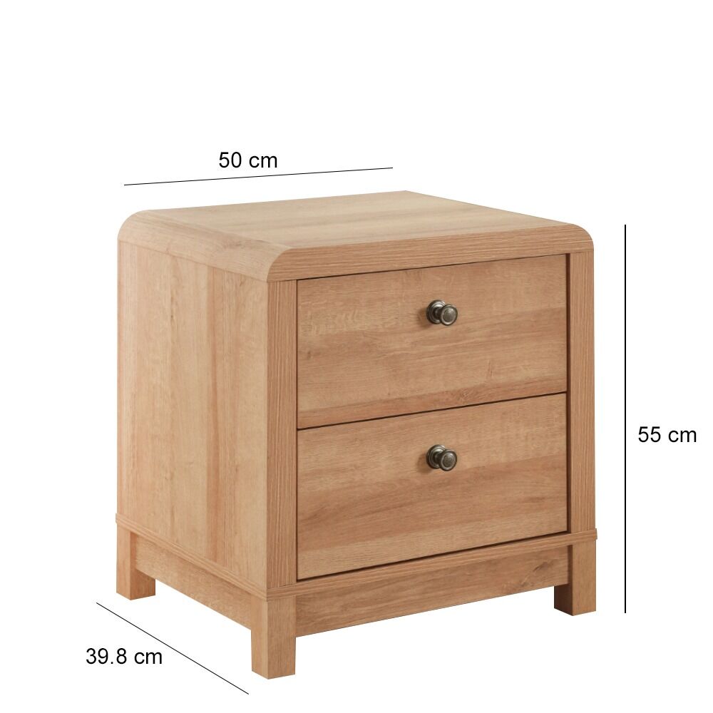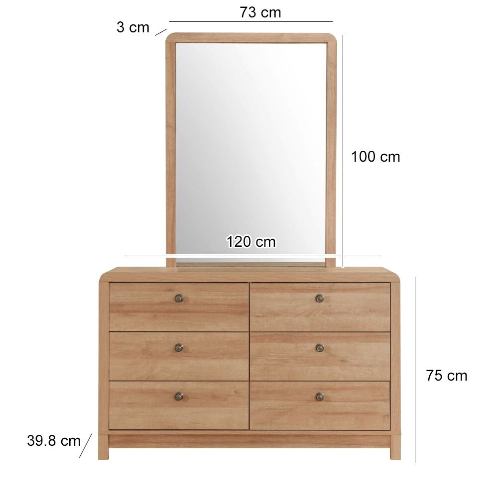 ابعاد السرير العرض 172.3 - الطول 207 - الارتفاع مع الرأسية 100 سم ابعاد الخزانة العرض 120 - العمق 55 - الارتفاع 220 سم ابعاد الكومودينو العرض 50 - العمق 39.8 - الارتفاع 55 سم ابعاد وحدة الادراج العرض 80 - العمق 39.8 - الارتفاع 120 سم ابعاد طاولة التزيين العرض 120 - العمق 39.8 - الارتفاع 75 سم ابعاد المرآة العرض 73 - العمق 3 - الارتفاع 100 سم |