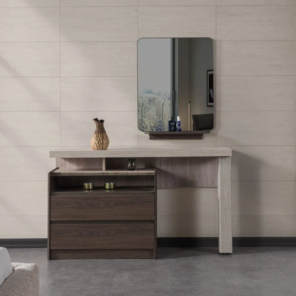 | يتضمن الطقم | 1 سرير كينغ - 1 تسريحة - 1 مرآة - 2 كومودينو |