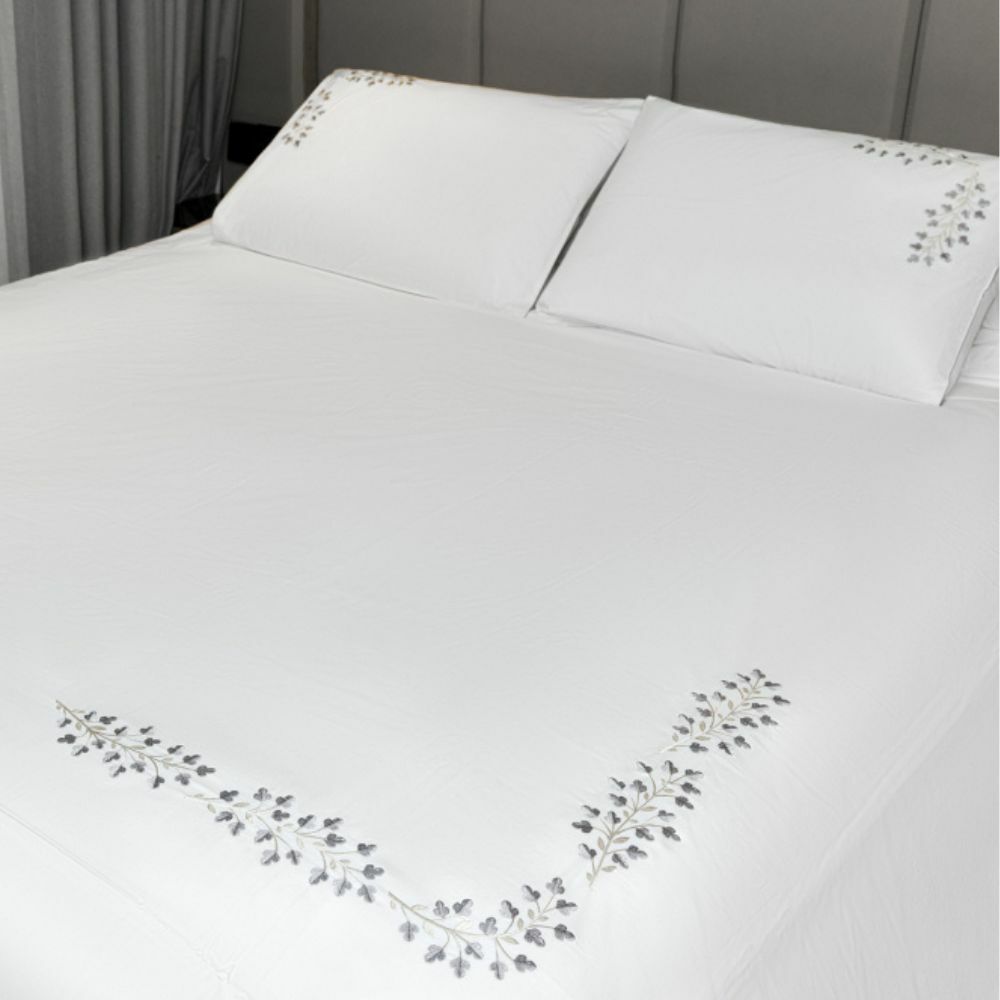 2 غطاء وسادة مطرز 2 غطاء وسادة ساده 1 شرشف سرير مطرز 1 ملاية سرير |