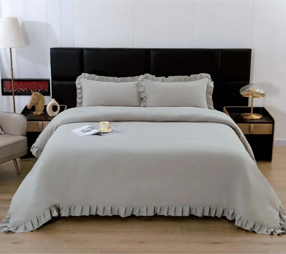 تمتّع بنوم هانئ مع شارم طقم لحاف سرير صيفي بدون حشوة كوين رمادي 4 قطع