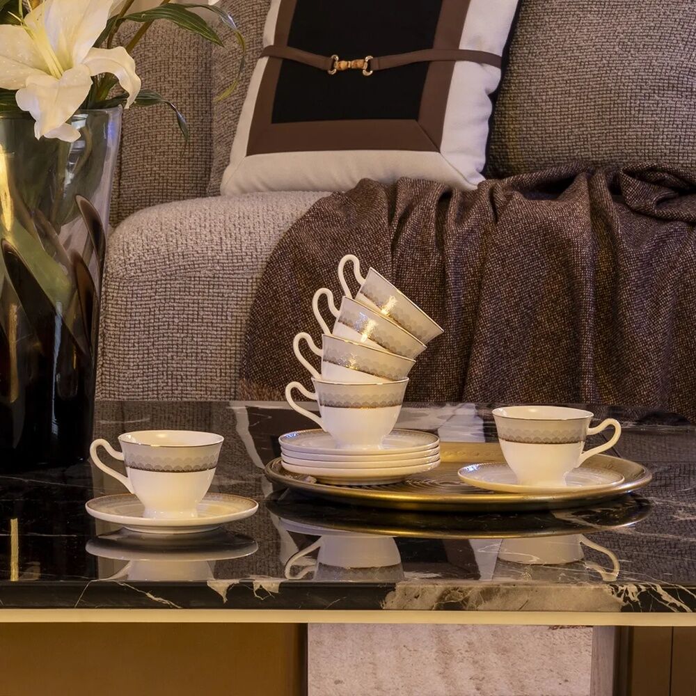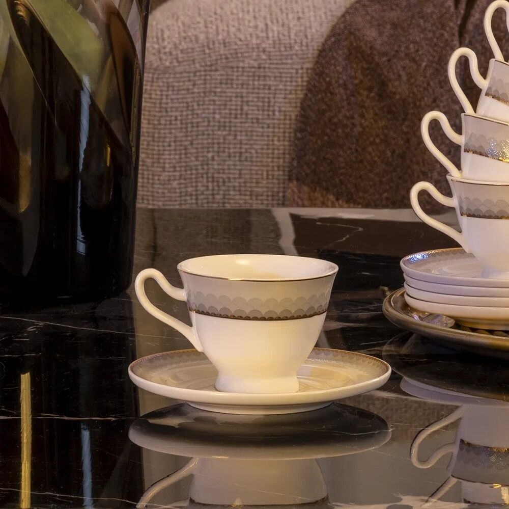 | يتضمن الطقم | 6 فنجان قهوة - 6 صحون |