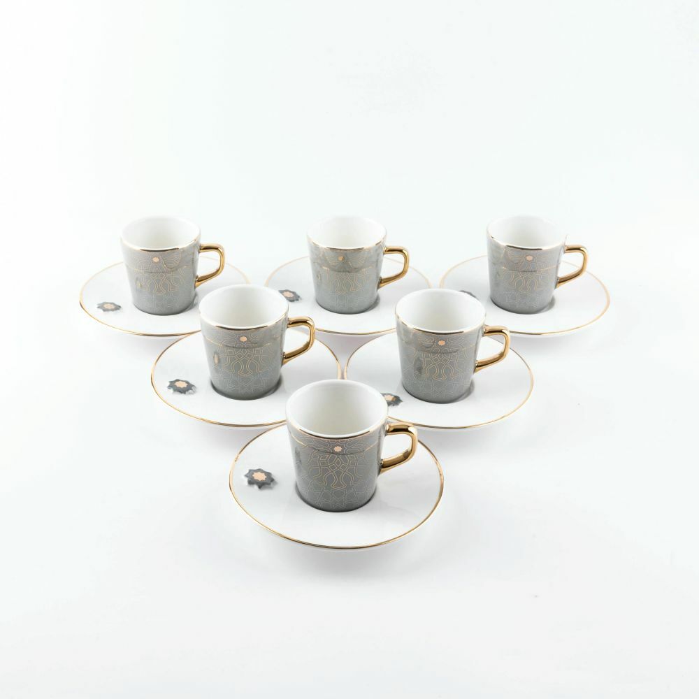 أنت تراجع:طقم قهوة تركية من أصالة 12 قطعة - رمادي وذهبي