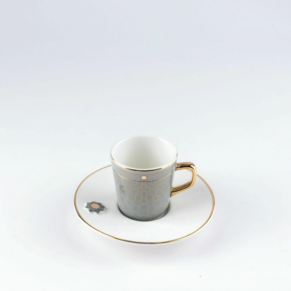 طقم قهوة تركية من أصالة حتمًا سيكون الخيار الأمثل لكل عشاق القهوة، فهو يتميز بتصميمه الفاخر الذي يجمع بين اللون الرمادي والتفاصيل الذهبية الراقية، ليمنحك تجربة قهوة استثنائية .مكون من 6 فناجين قهوة و6 صحون .