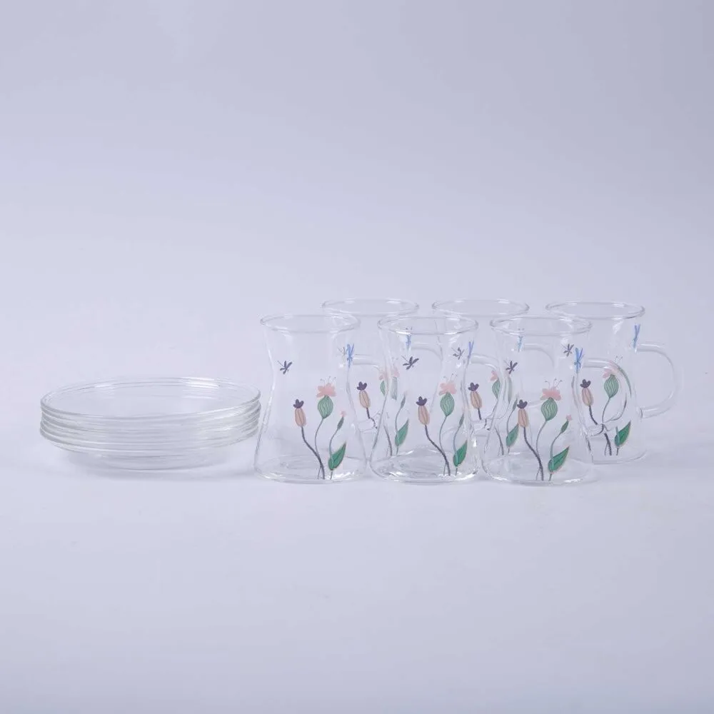 اقتني طقم كاسات الشاي الأنيق هذا لتعززي أواني تناول المشروبات لديكِ، مكون من 6 قطع، ومصمم بنقشات جميلة، مصنوع من زجاج البوروسيليكات عالى الجودة لضمان الاستدامة