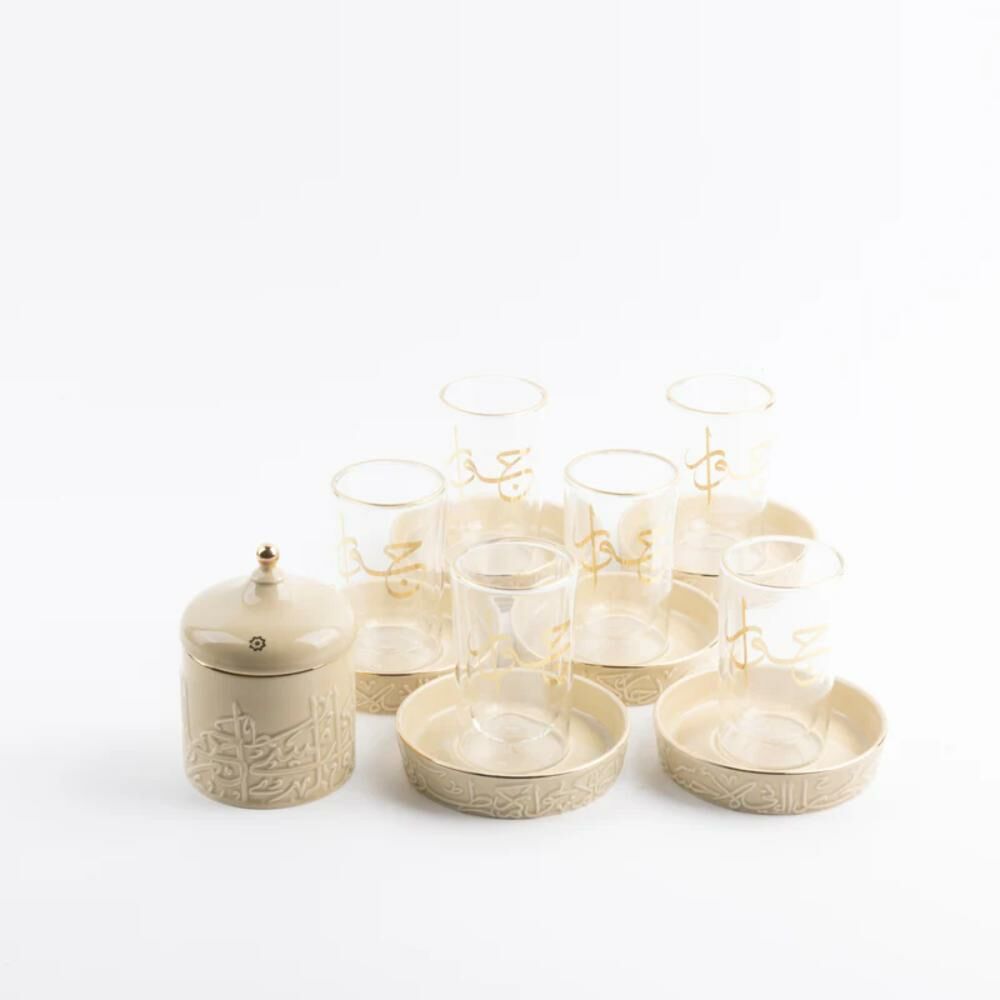 أنت تراجع:طقم كاسات شاي 13 قطعة من جوار - كريمي وذهبي