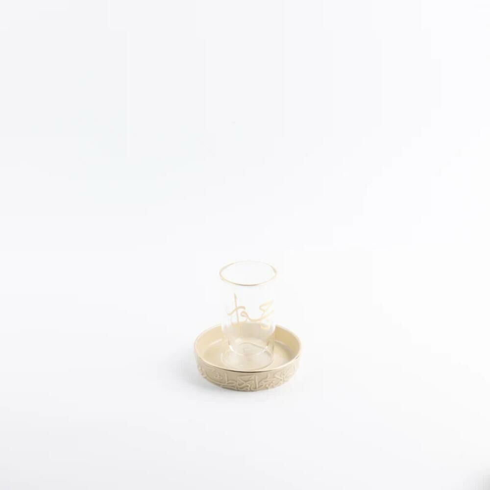 - 6 أطباق متناسقة مع كاسات الشاي من حيث التصميم والحجم.