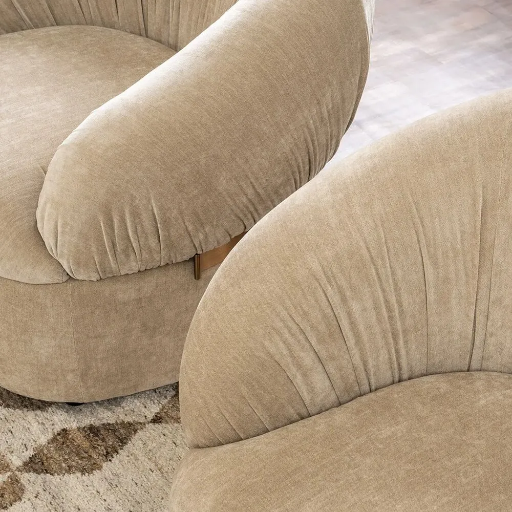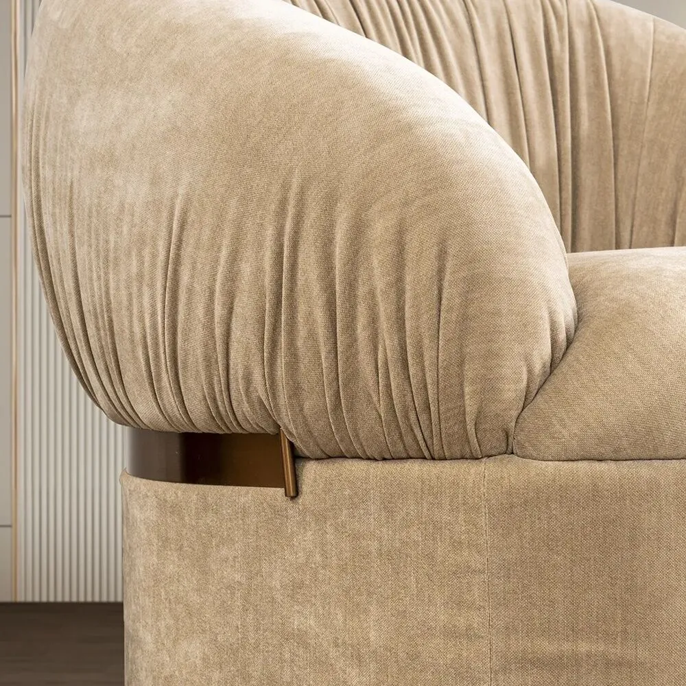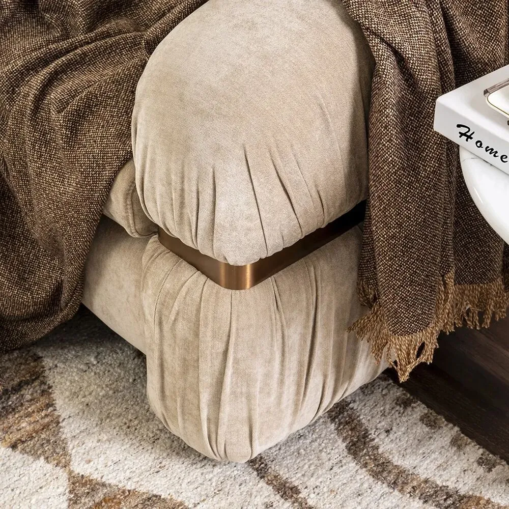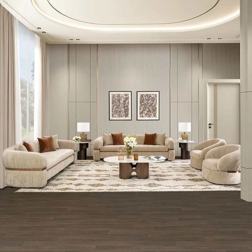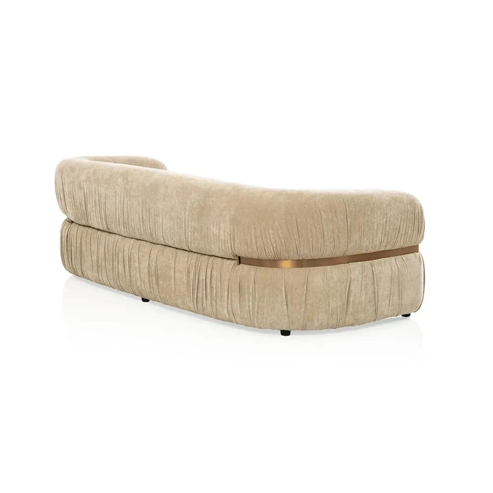 كنب انسيابي مع لون متوافق مع العديد من الألوان. لها مظهر أوروربي مع قوائم جذابة. تعطي الوسائد الاضافية المصنوعة من القماش الناعم الحيوية والجمال. تجمع بين التصميم الفريد والعملي بذات الوقت لتمنحك أعلى مستويات الراحة والاسترخاء لتضفي على اجتماعاتك وجلساتك لمسة من الدفء والعصرية.