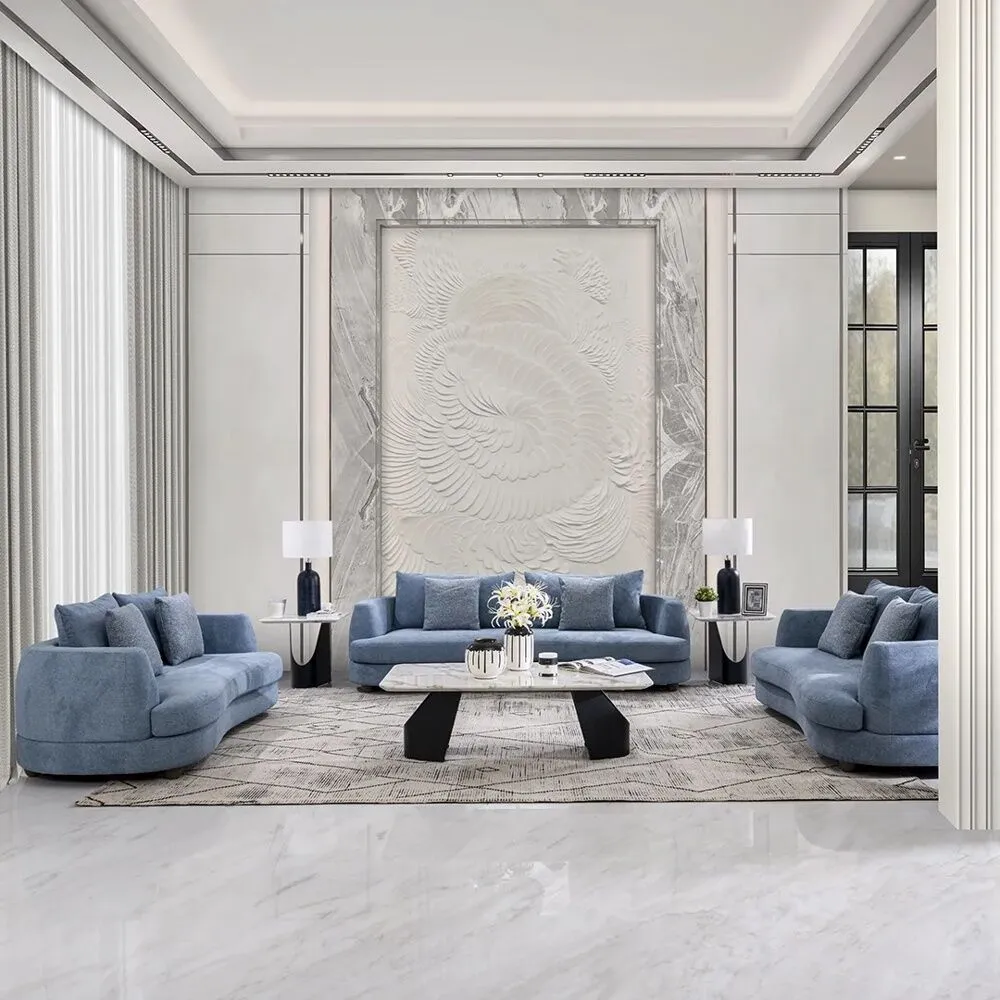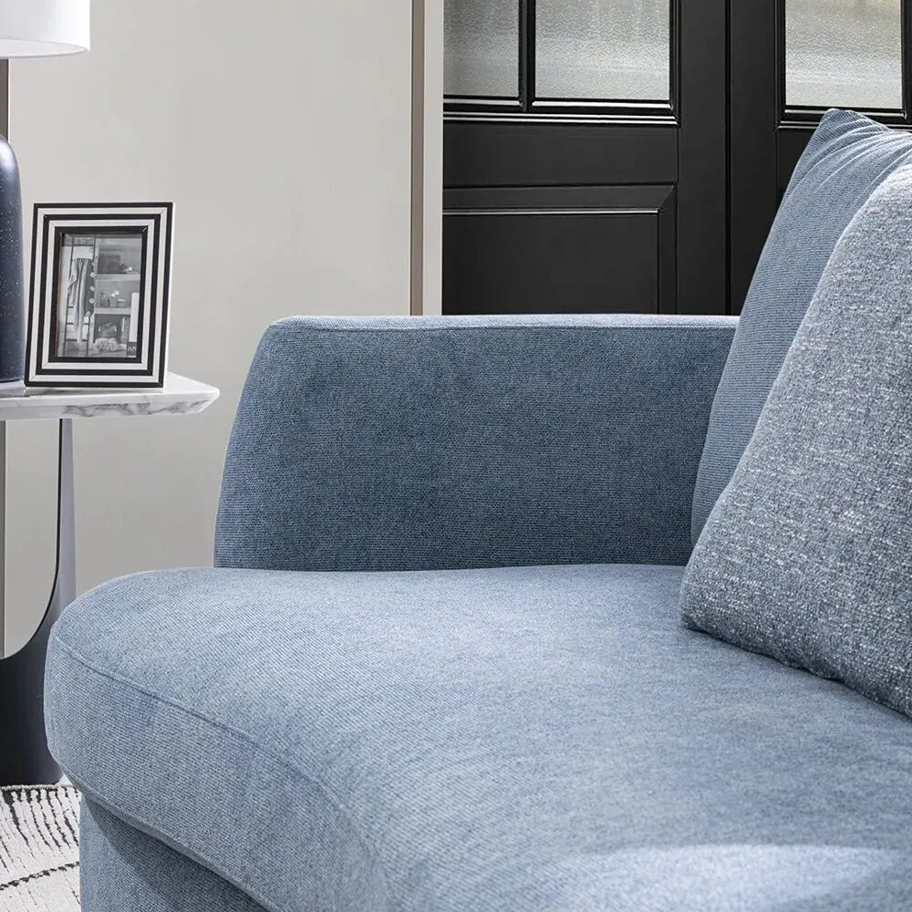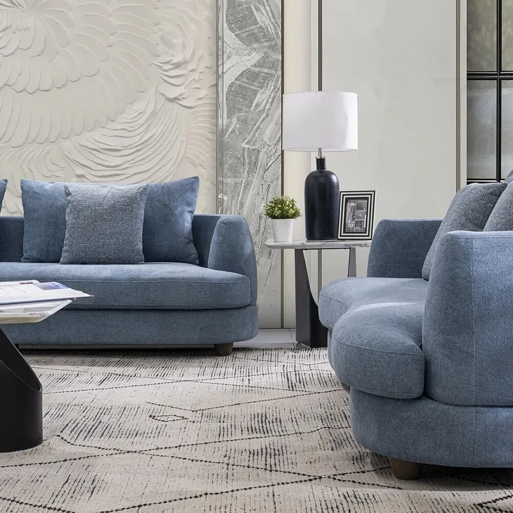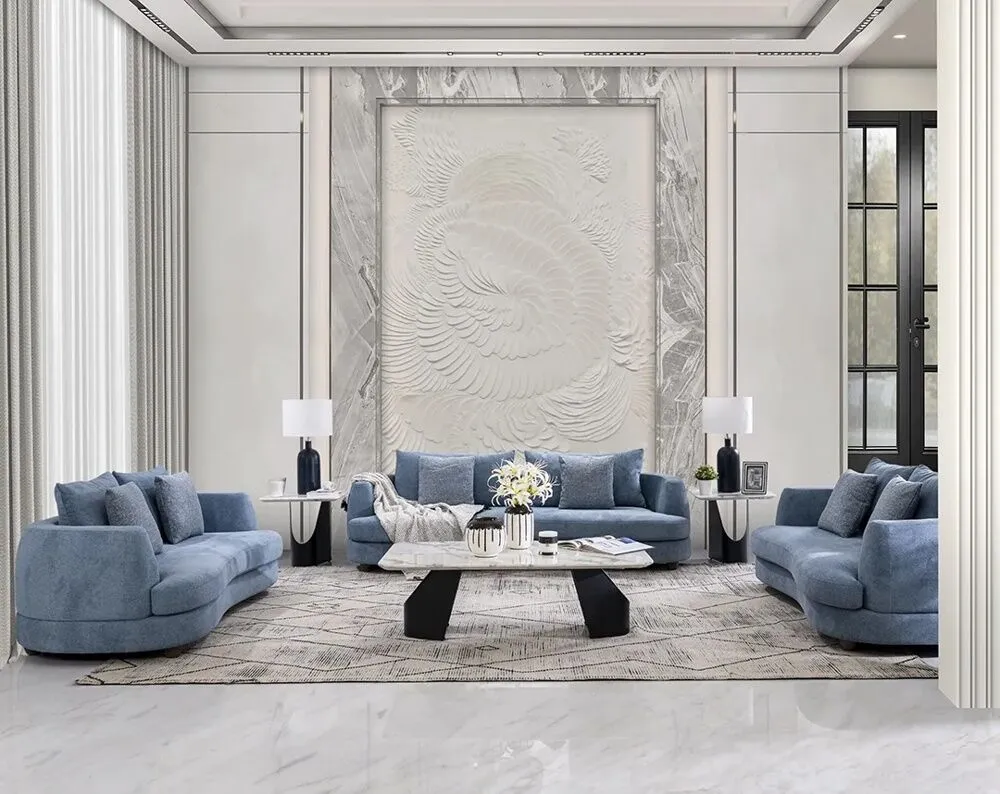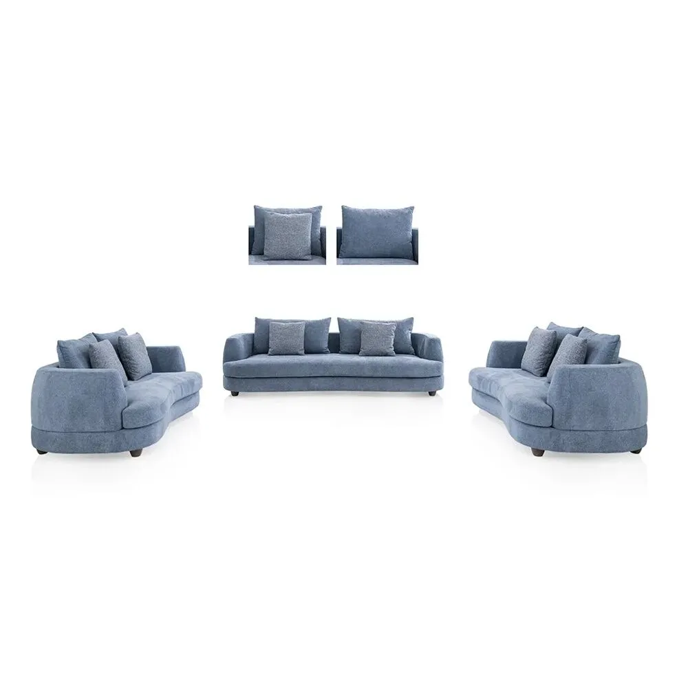 أضف لمسة من الأناقة العصرية إلى منزلك مع طقم الأريكة الأزرق الفاتح هذا. يتميز بتصميم أنيق يجمع بين قماش الشمواه الفاخر والهيكل الخشبي القوي لضمان الراحة والمتانة. بفضل خطوطه البسيطة وإطلالته الراقية، يعد خيارًا مثاليًا كقطعة أساسية في أي ديكور حديث.