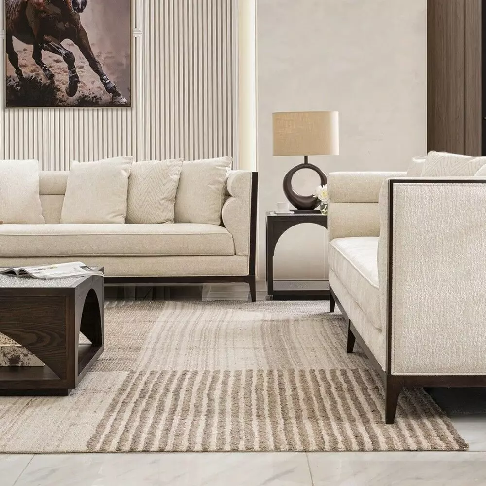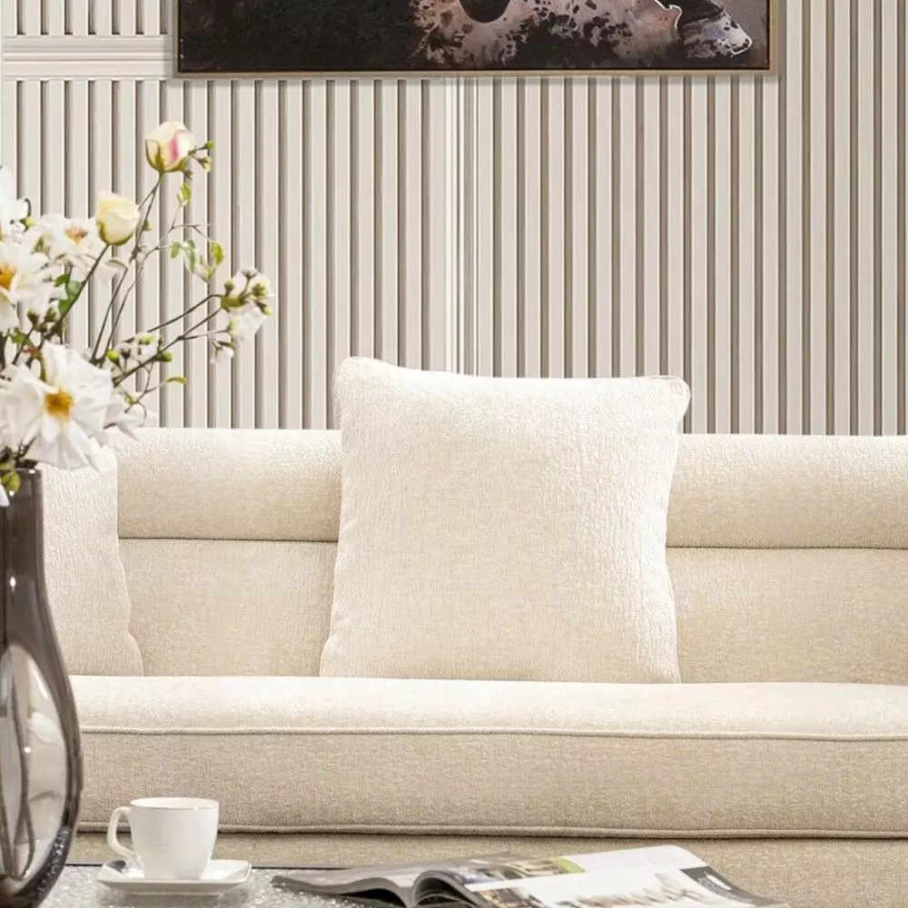 مصمم ليجسد دفء وراحة المنزل، يمنحك هذا الطقم المكون من ثلاث قطع لمسة أناقة غير متكلّفة لغرفة المعيشة. الإطار المصنوع من الخشب يمنح دعمًا قويًا وطابعًا خالدًا. يغلف القماش القطني الممزوج بلونه البيج-البني الدافئ القطع بإحساس من الحميمية. يتناغم التصميم العصري مع الديكورات الحديثة والتقليدية على حد سواء بفضل خطوطه النظيفة وحضوره الهادئ. ليس فقط جميلاً، بل هو ملاذ للاسترخاء، وسهرات الأفلام، ولمّ الشمل مع الأحباء. طقم الأريكة هذا يحتوي على كل ما تحتاجه لتكوين مساحة معيشة دافئة ومريحة. الخشب الطبيعي، القماش الغني، والحس العملي – أليست هذه هي روح البيت الحقيقي؟