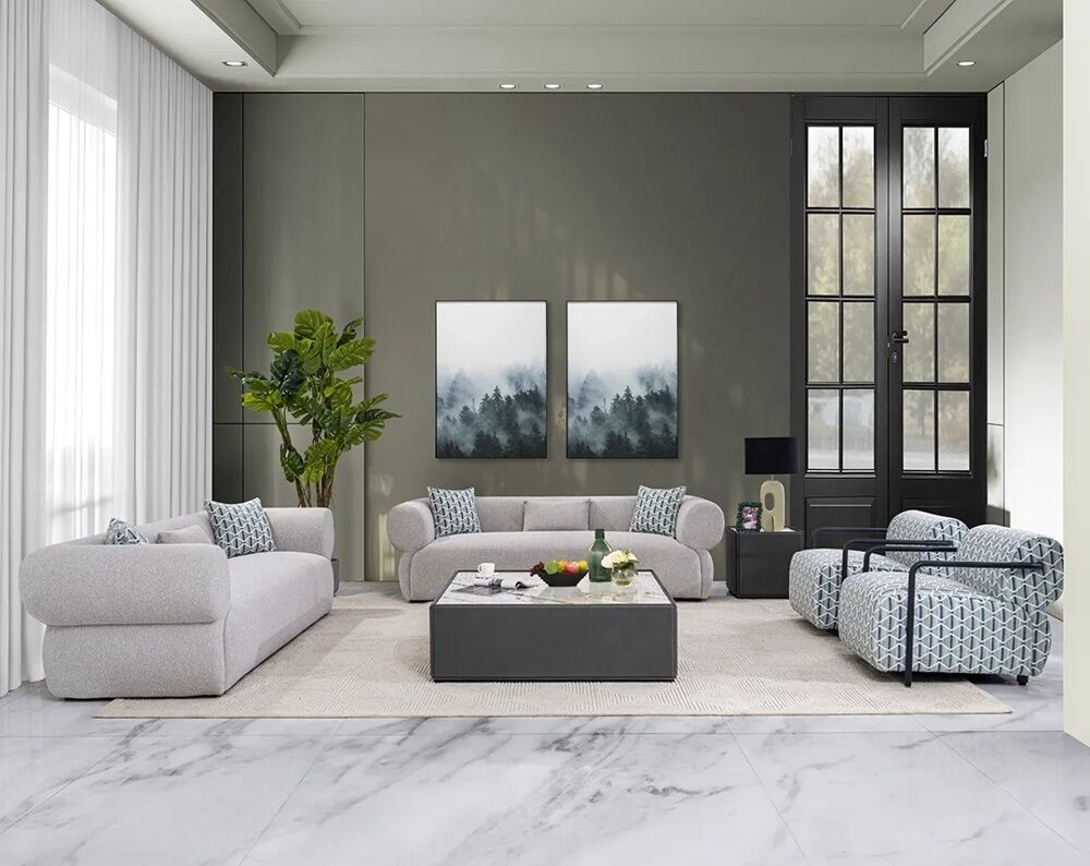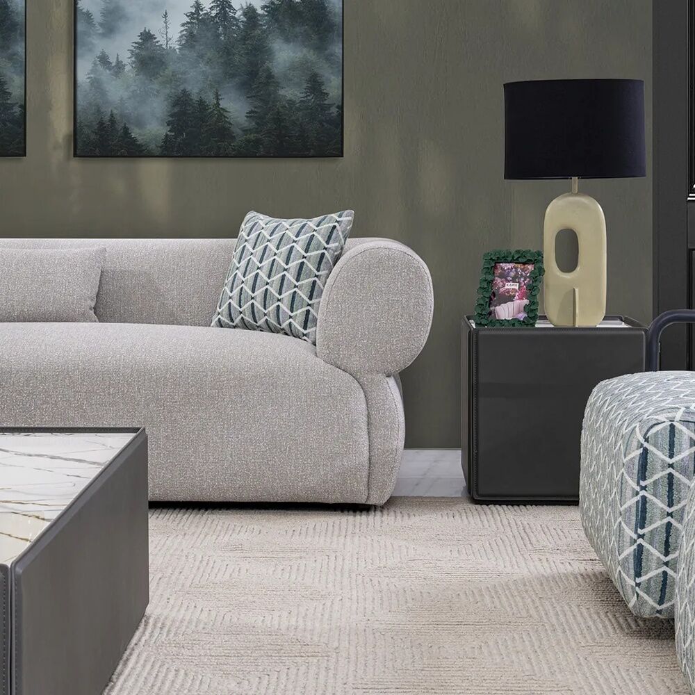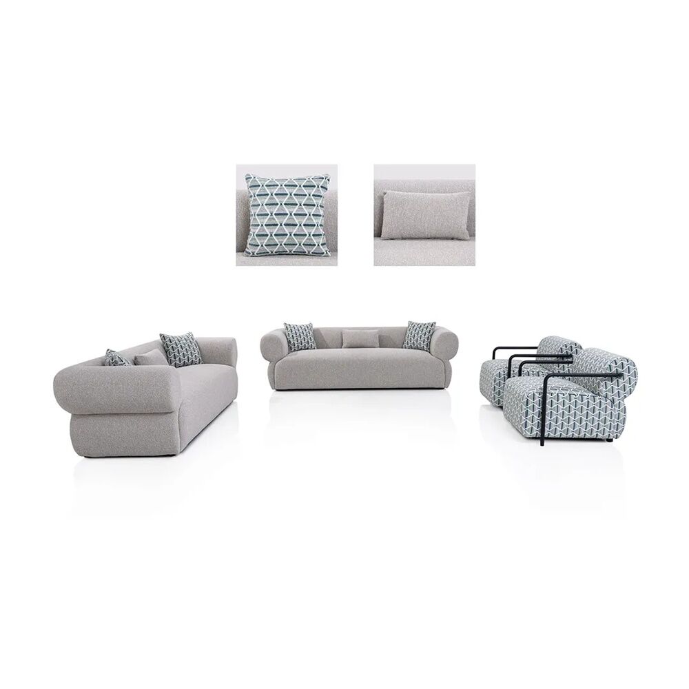 حوّل غرفة معيشتك إلى ملاذ أنيق مع طقم الأرائك المتكامل . تتضمن هذه المجموعة أريكتين واسعتين بثلاثة مقاعد وكرسيين مريحين، جميعها مغطاة بنسيج الشنيل الناعم بألوان رمادية متعددة الاستخدامات ونقوش زرقاء جريئة للكراسي. تضيف الأذرع الدائرية الأنيقة لمسة من الرقي إلى التصميم العصري، بينما تضمن اللمسات النهائية المصنوعة من الفولاذ المقاوم للصدأ متانة تدوم طويلاً. يأتي هذا الطقم كاملاً مع وسائد ديكورية تضفي لمسة جمالية وراحة إضافية لقضاء عطلات نهاية الأسبوع الممتعة. تتناغم الألوان الرمادية المحايدة بشكل رائع مع مختلف أنماط الديكور، مما يجعل طقم الأرائك هذا خيارًا عمليًا للمنازل العصرية. سواء كنت تستضيف الأصدقاء أو تستمتع بأمسية هادئة، يوفر لك طقم هذا مساحة جلوس واسعة دون التنازل عن الأناقة أو الراحة.