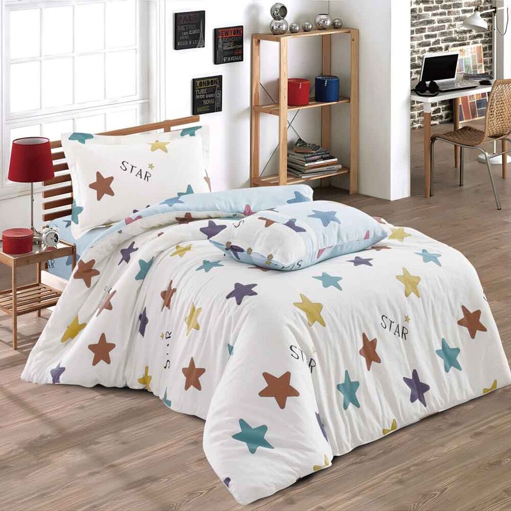 يتضمن الطقم 1 لحاف - 1 شرشف - 1 غطاء وسادة بحواف - 1 غطاء وسادة بدون حواف