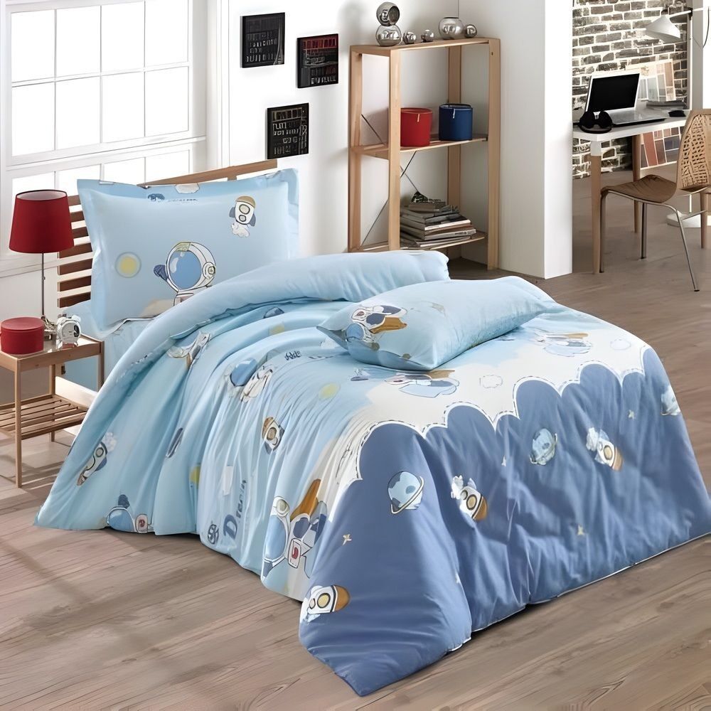 يتضمن الطقم 1 لحاف - 1 شرشف - 1 غطاء وسادة بحواف - 1 غطاء وسادة بدون حواف