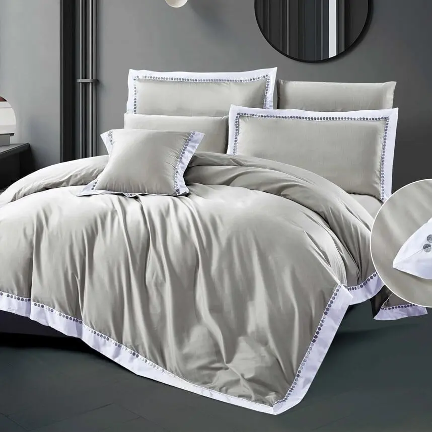 طقم لحاف أكوا بارك صيفي مزدوج قطن فاخر300 غرزة مطرز 7 قطع - رمادي فاتح