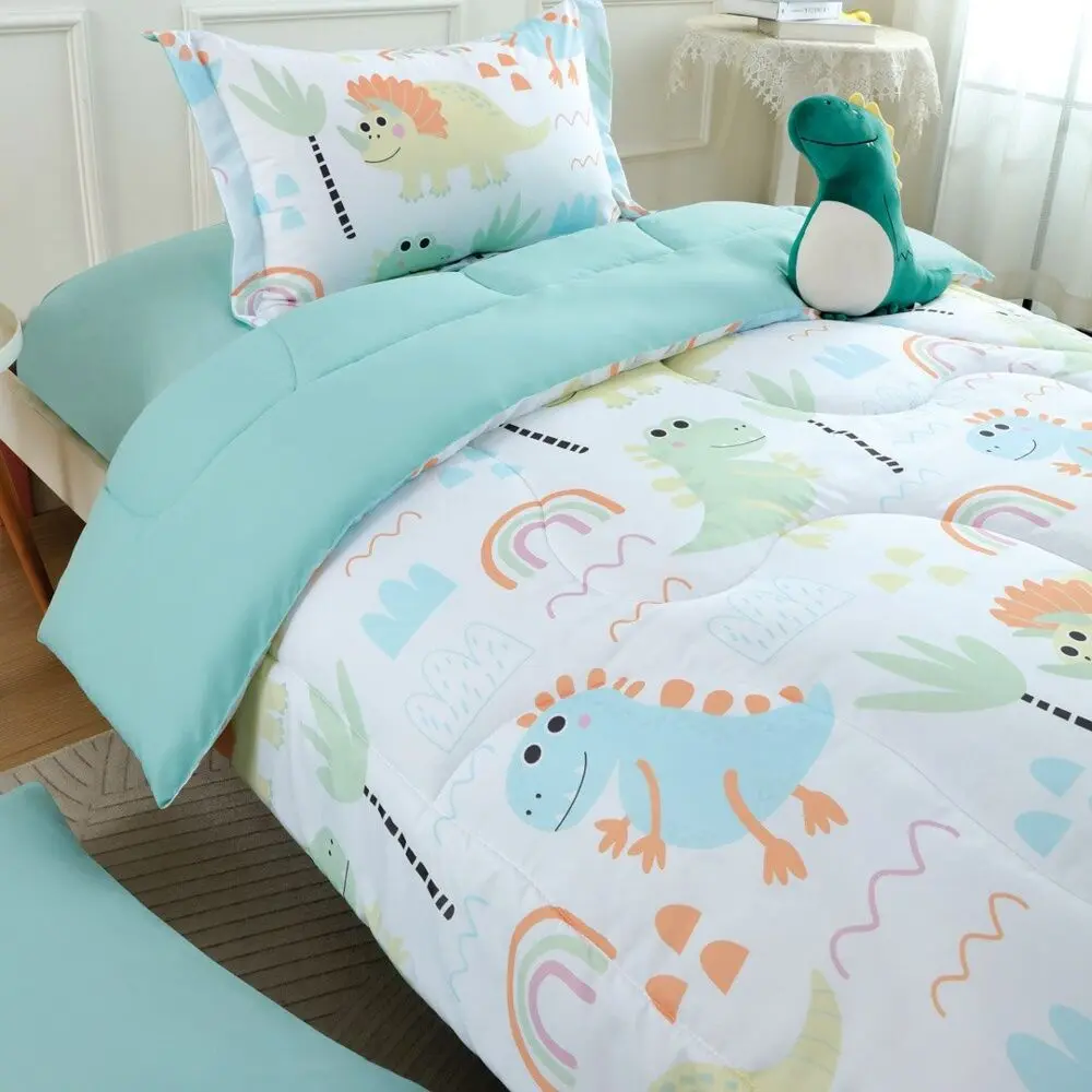 طقم لحاف اطفال مفرد ونص صيفي تيمون - 5 قطع - أبيض وتيفاني