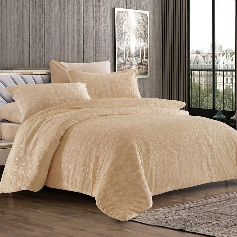 طقم لحاف بيانا شتوي مزدوج مخمل محفور 6 قطع - بيج