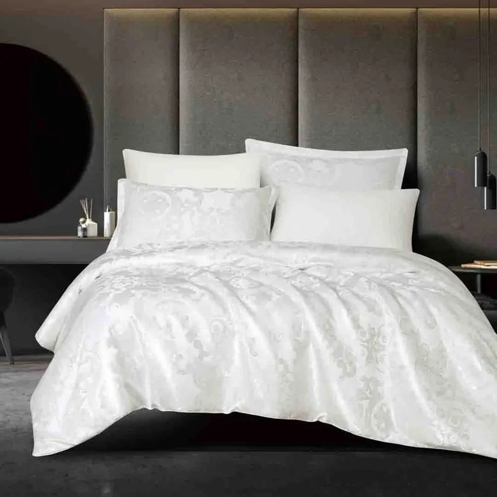 طقم لحاف تورينتو صيفي مزدوج قطن فاخر جاكارد 6 قطع - أبيض