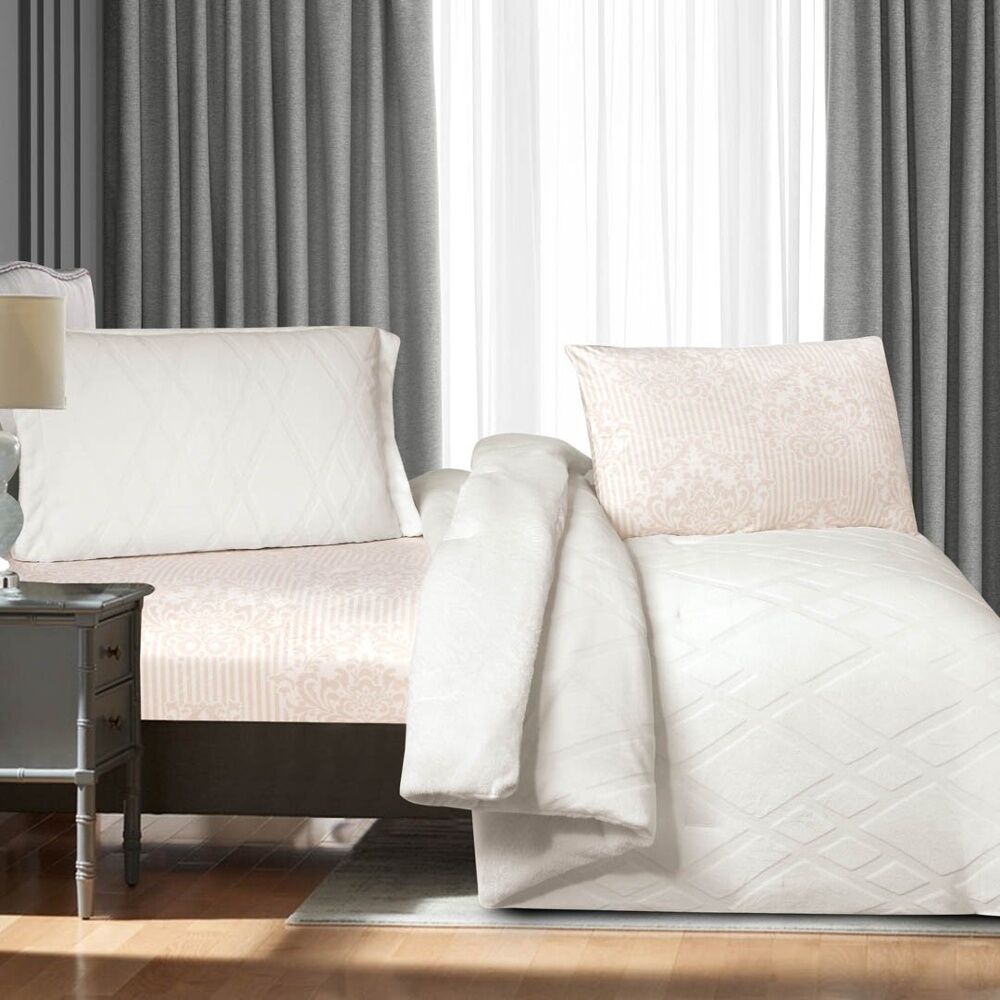 أنت تراجع:طقم لحاف توليدو شتوي مزدوج مخمل وفرو 6 قطع - ابيض