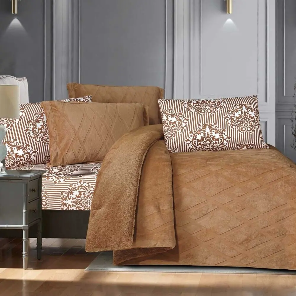 أنت تراجع:طقم لحاف توليدو شتوي مزدوج مخمل وفرو 6 قطع - بني