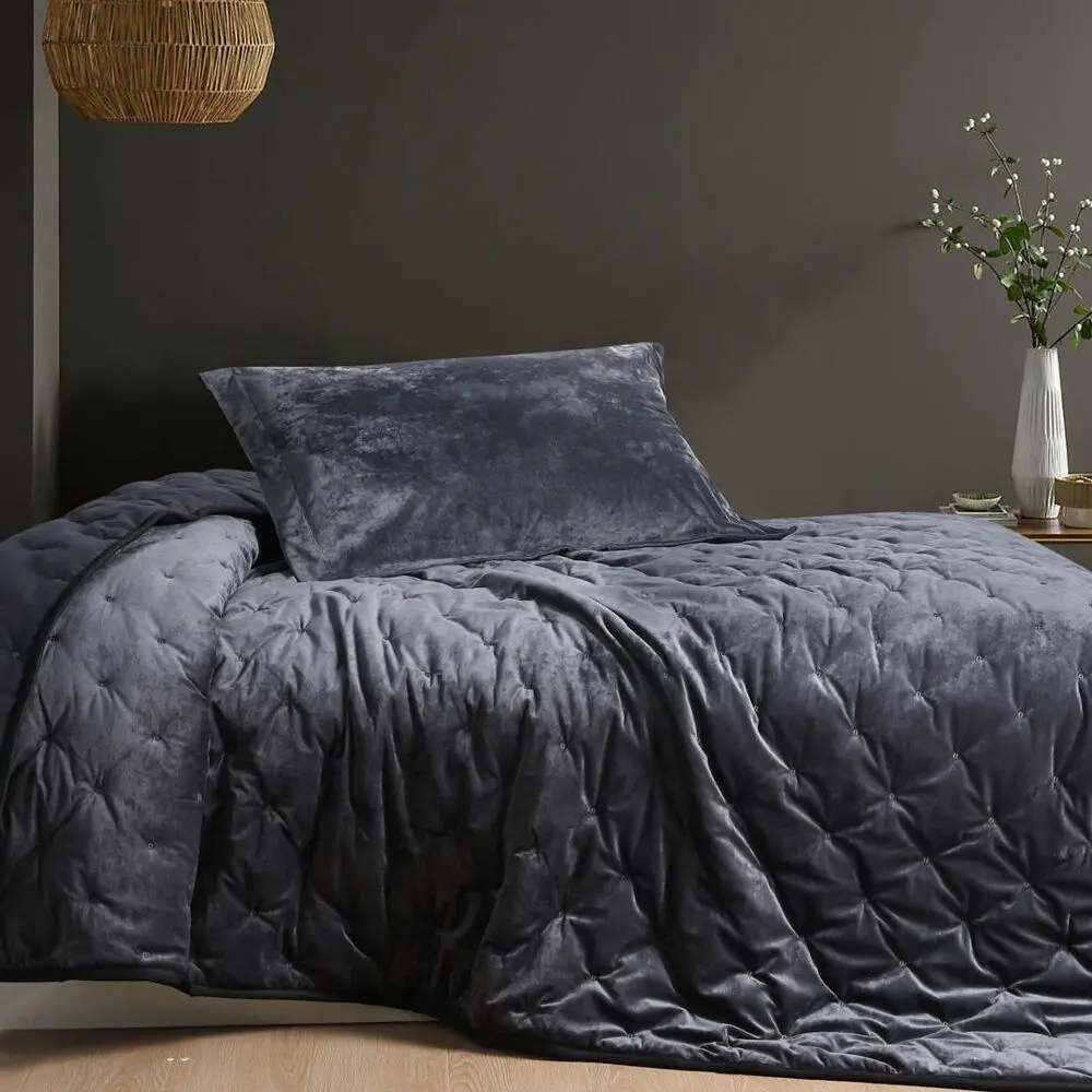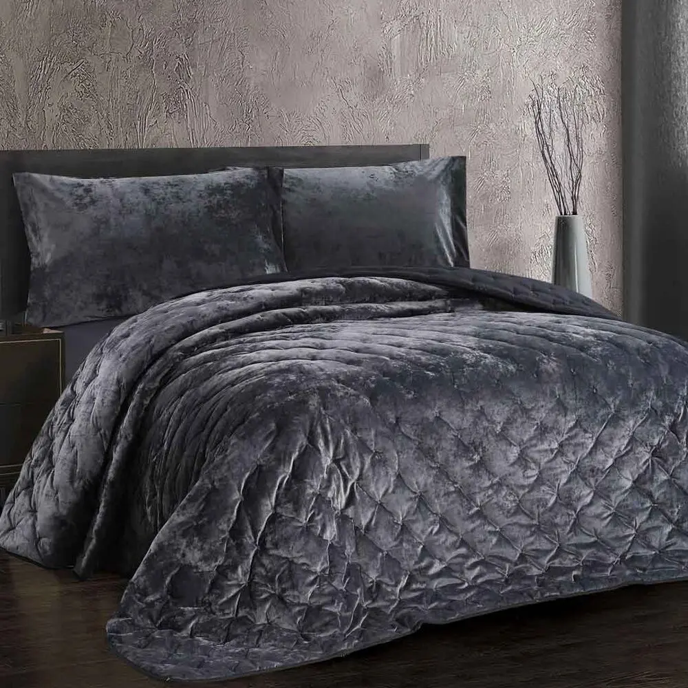 طقم لحاف دايموند شتوي مزدوج فاخر مخمل 3 قطع - رمادي غامق