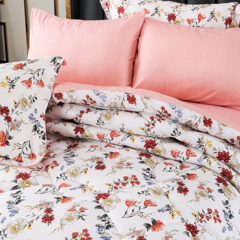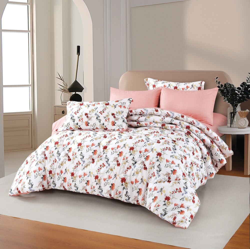 طقم لحاف ديزاير صيفي كوين 200×150 سم - أبيض ووردي - 4 قطع