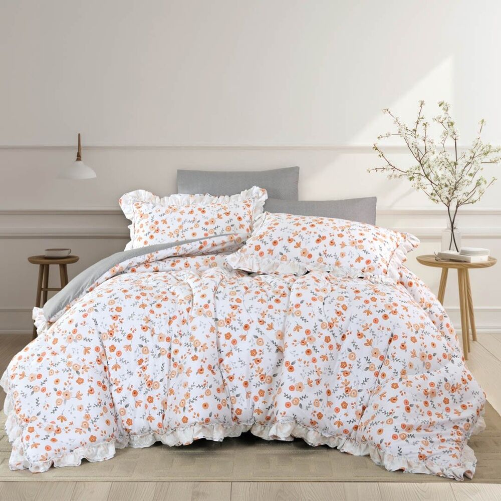 طقم لحاف ريد روز صيفي كوين 200×150 سم - أبيض ورصاصي - 4 قطع