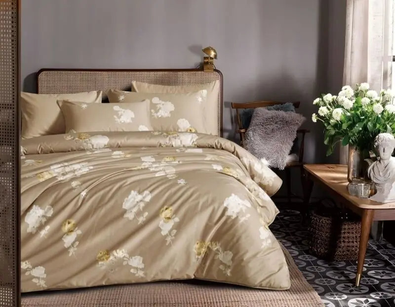 طقم لحاف ريم صيفي مزدوج قطن فاخر برسومات الزهور 6 قطع - بيج