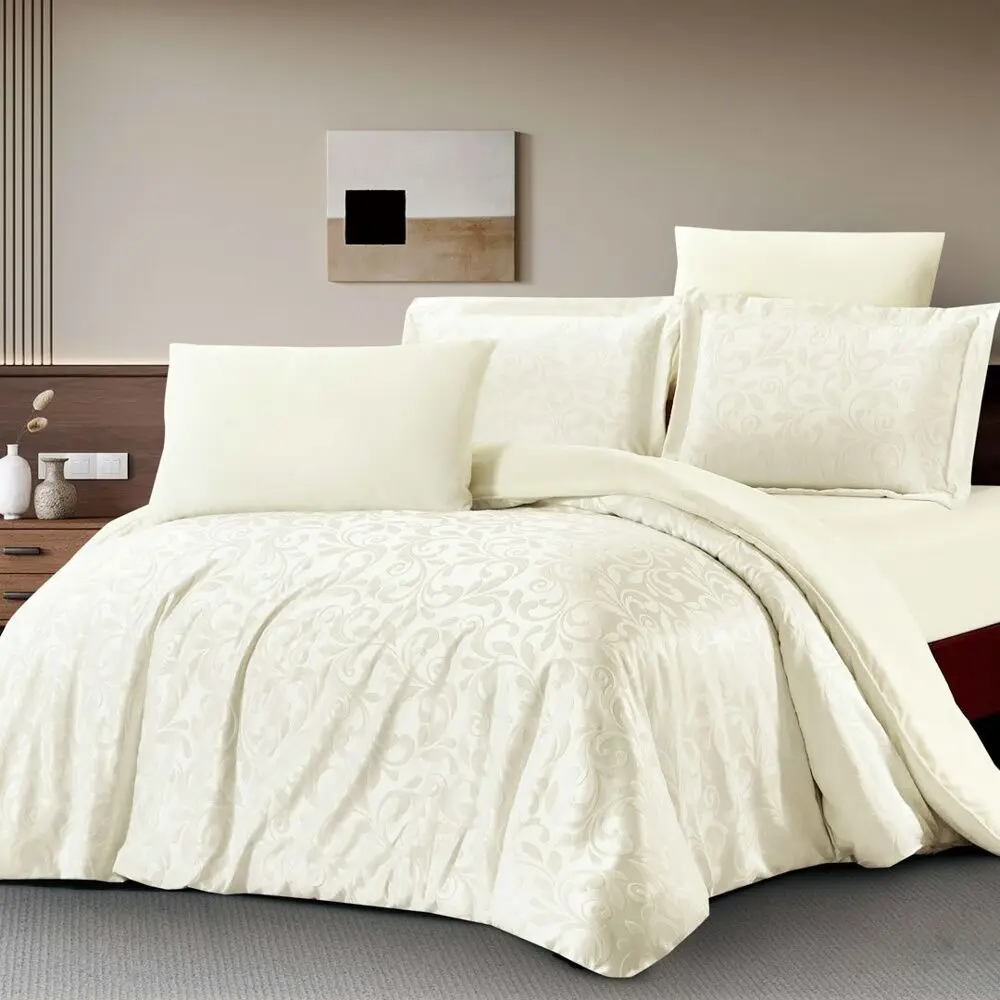 اضف الدفء والراحة لغرفة نومك مع ساريف مفارش شتوية كوين مخمل جاكارد كريمي 4 قطع