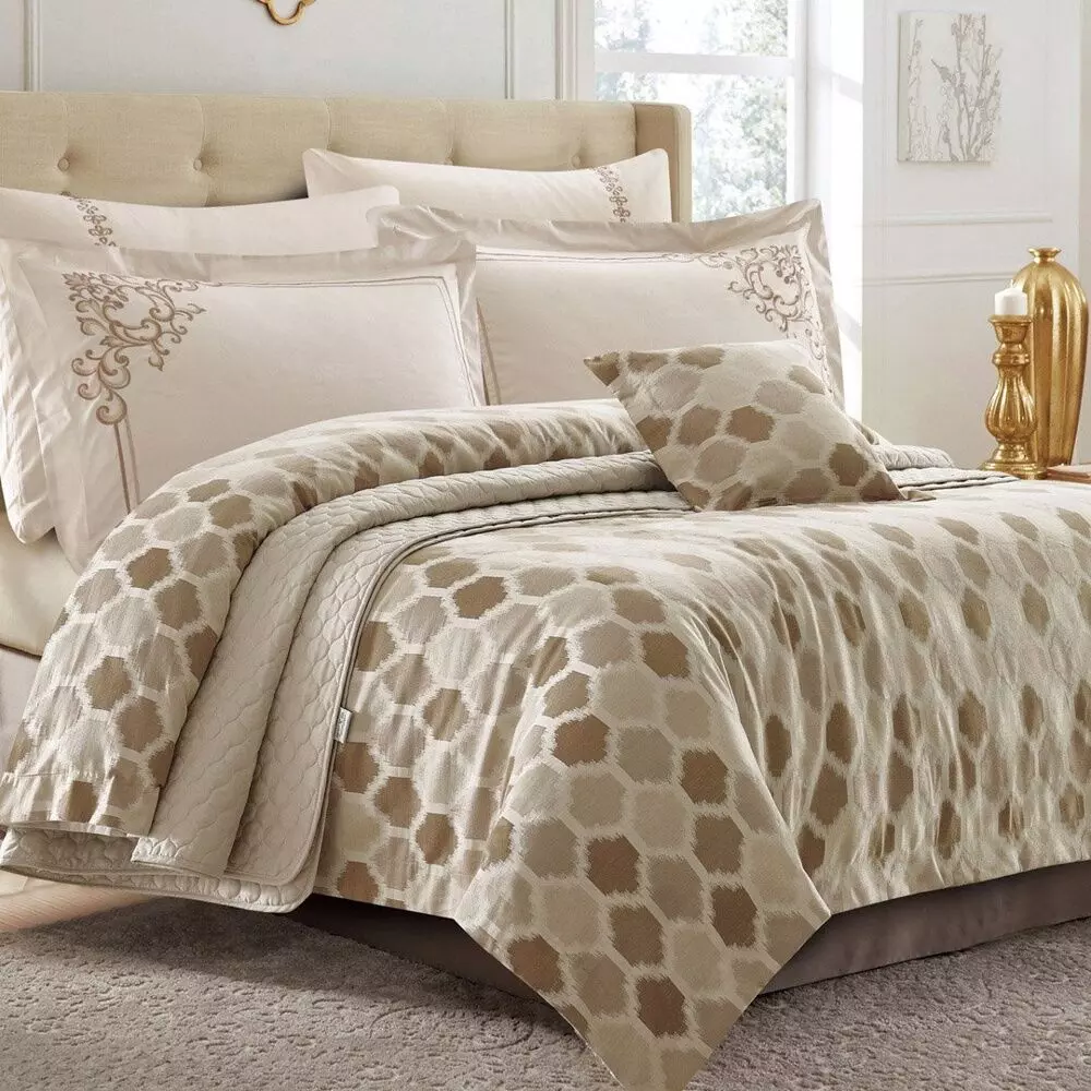 أنت تراجع:طقم لحاف صيفي قطن مزدوج باولا - 8 قطع - بيج