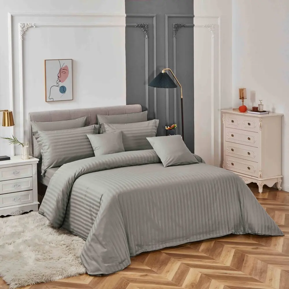 غطاء اللحاف : الطول : 260 سم العرض : 240 سم الحشوة : الطول : 260 سم العرض : 240 سم شرشف مطاط : الطول : 200 سم العرض : 35 + 200 سم 2 غطاء وسادة :الطول : 50 سم العرض : 5 + 70 سم 2 غطاء وسادة : الطول : 50 سم العرض : 70 سم |