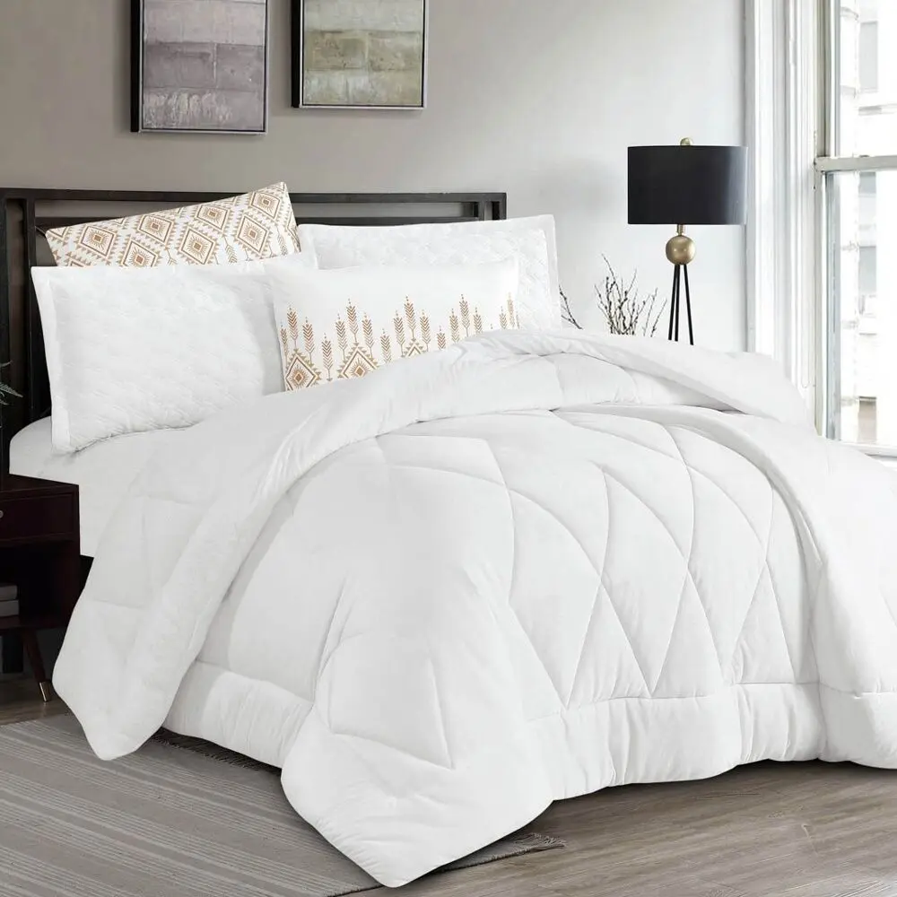 طقم لحاف فيينا شتوي مزدوج مخمل وفرو 6 قطع - ابيض