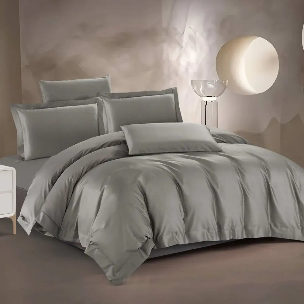 طقم لحاف كانيز صيفي مزدوج قطن 300 غرزة 6 قطع - رمادي