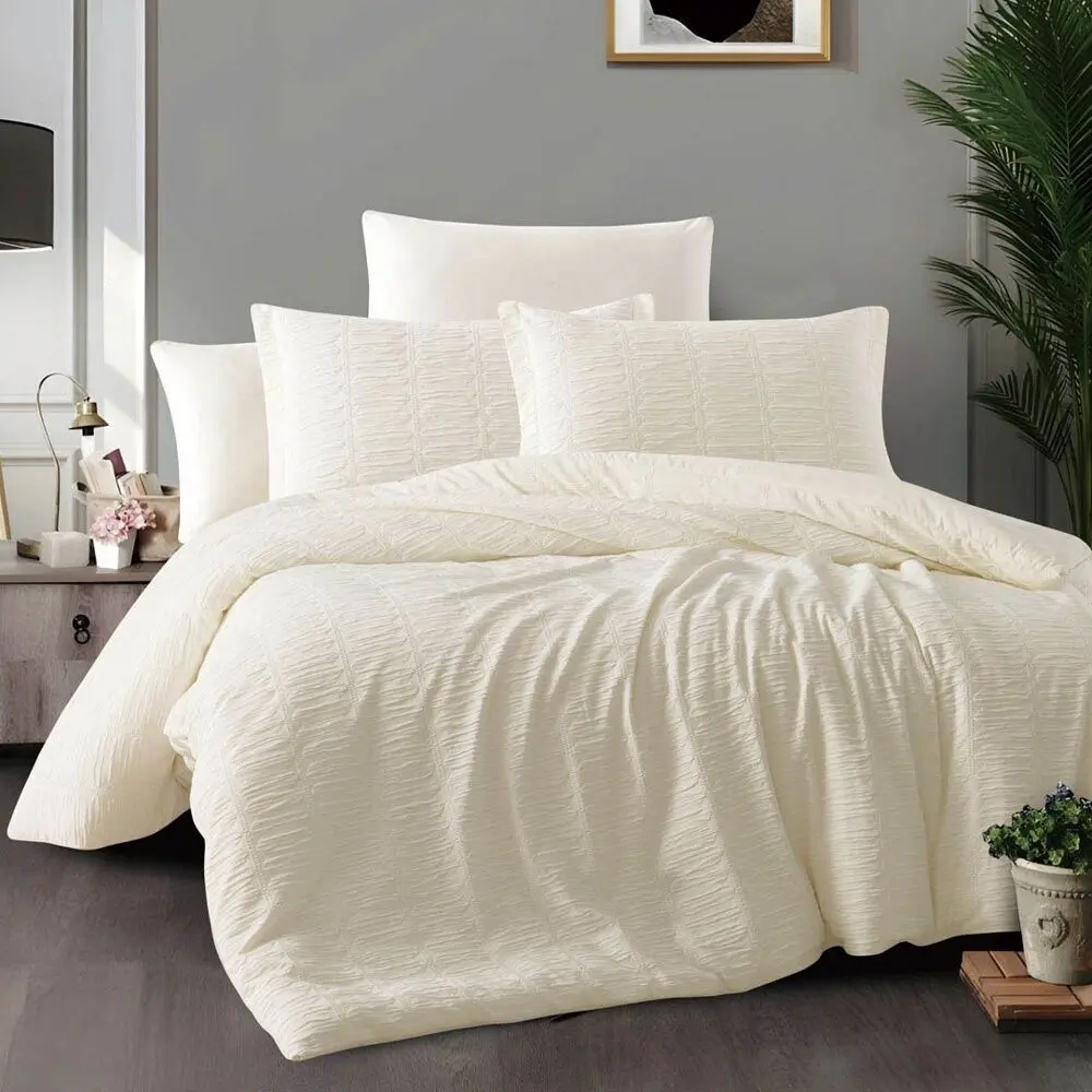 طقم لحاف كوين صيفي جورمان 200X150 سم جاكارد - 4 قطع - كريمي