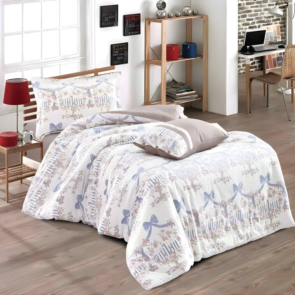 يتضمن الطقم 1 لحاف - 1 شرشف - 1 غطاء وسادة بحواف - 1 غطاء وسادة بدون حواف