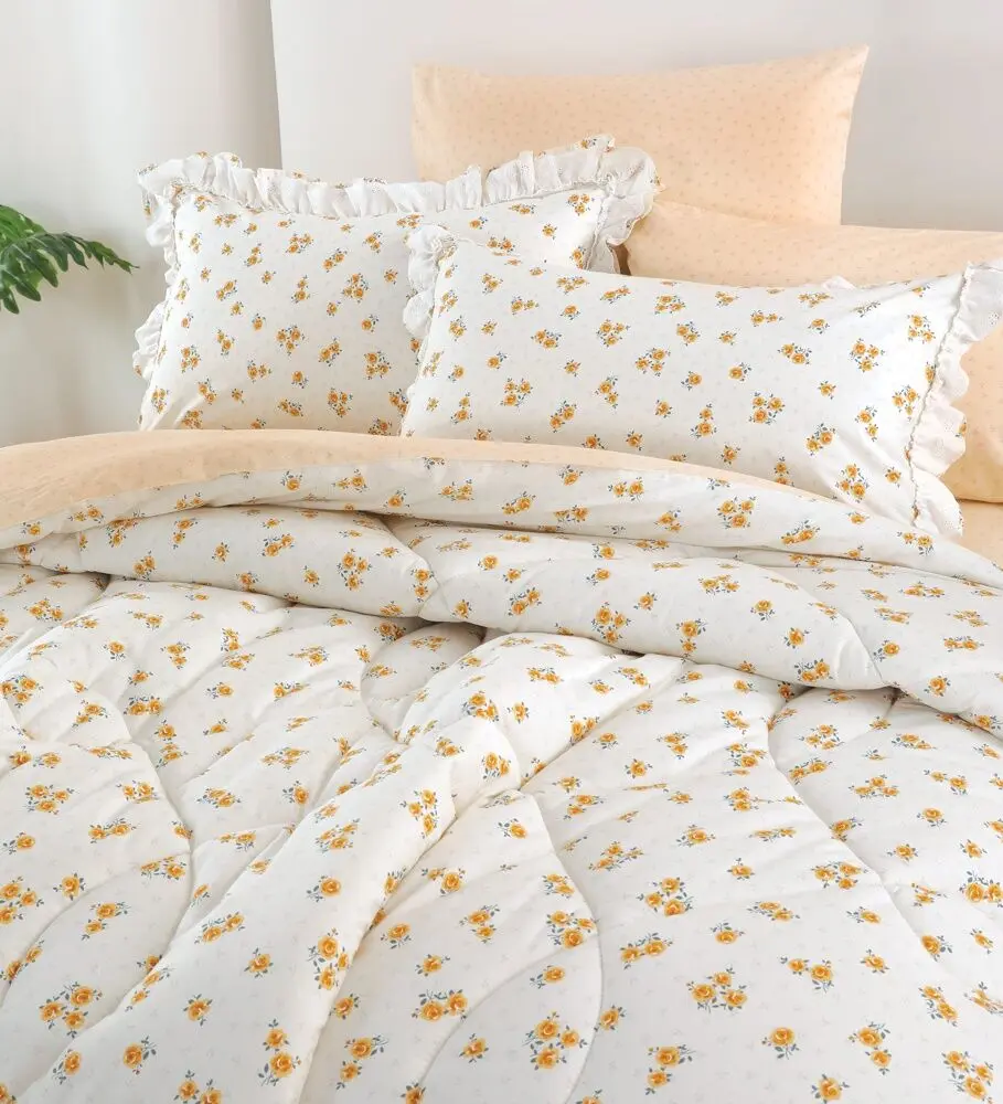أنت تراجع:طقم لحاف كوين صيفي قطن ريد روز - 4 قطع - كريمي وأصفر