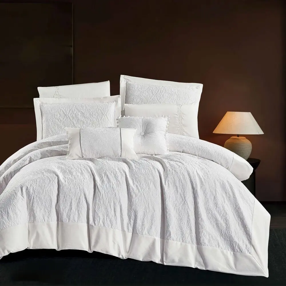 استمتع بأقصى درجات النعومة والراحة مع طقم لحاف مصنوع من 100% قطن جاكارد عالي الجودة، يتميز بملمس ناعم وتهوية ممتازة تناسب أجواء الصيف الحارة، ليمنحك نومًا هادئًا ومنعشًا يدوم طوال الليل.