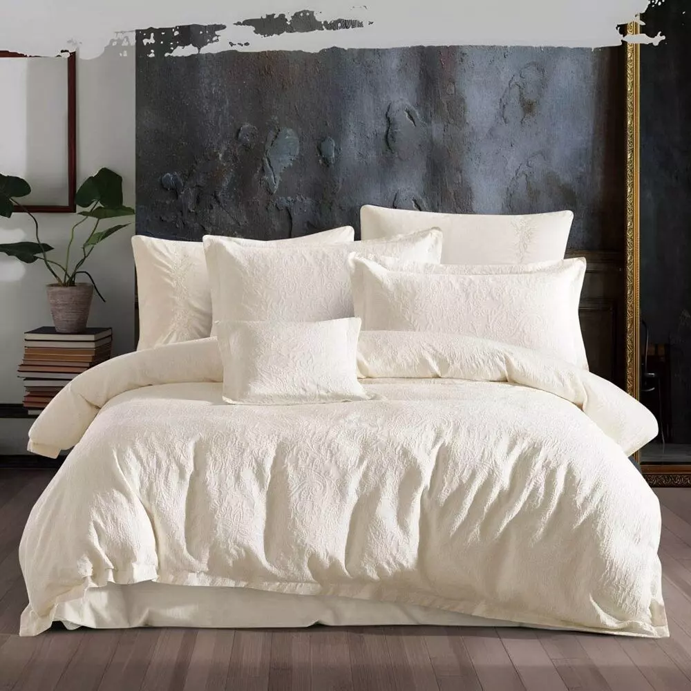 تألّق بأناقة الصيف مع جليندون لحاف قطن جاكارد صيفي مزدوج كريمي 8 قطع