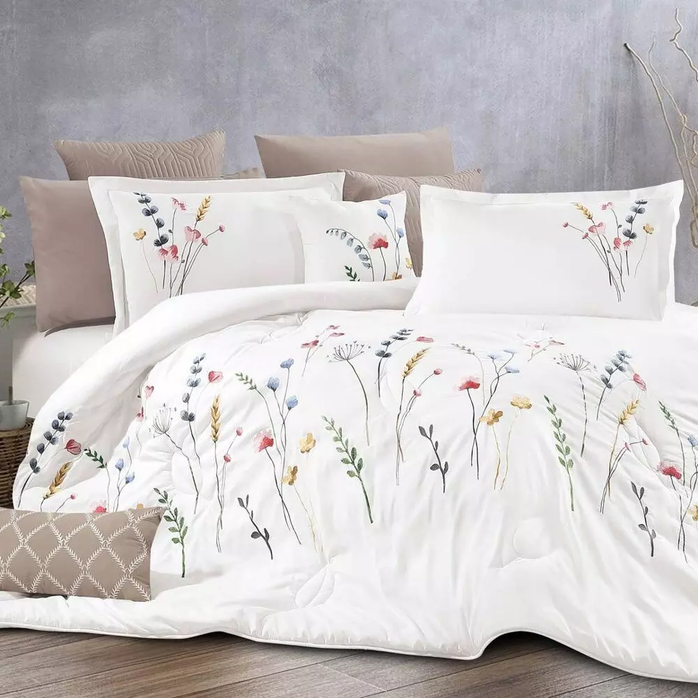 أنت تراجع:طقم لحاف مزدوج صيفي زمرد - 12 قطعة - أبيض و بيج