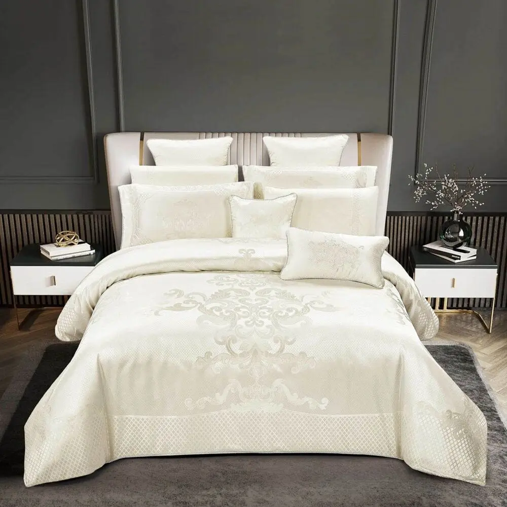 | يتضمن الطقم | 1 لحاف 1 شرشف مطاط 2 غطاء وسادة بحواف 2 غطاء وسادة 2 غطاء وسادة دائري 1 خدادية 1 وسادة ديكورية فقط |
