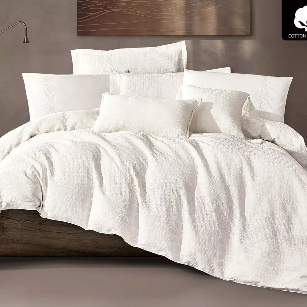 | يتضمن الطقم | 1 لحاف 1 شرشف مطاط 2 غطاء وسادة 2 غطاء وسادة بحواف 1 وسادة ديكور 1 خدادية فقط |