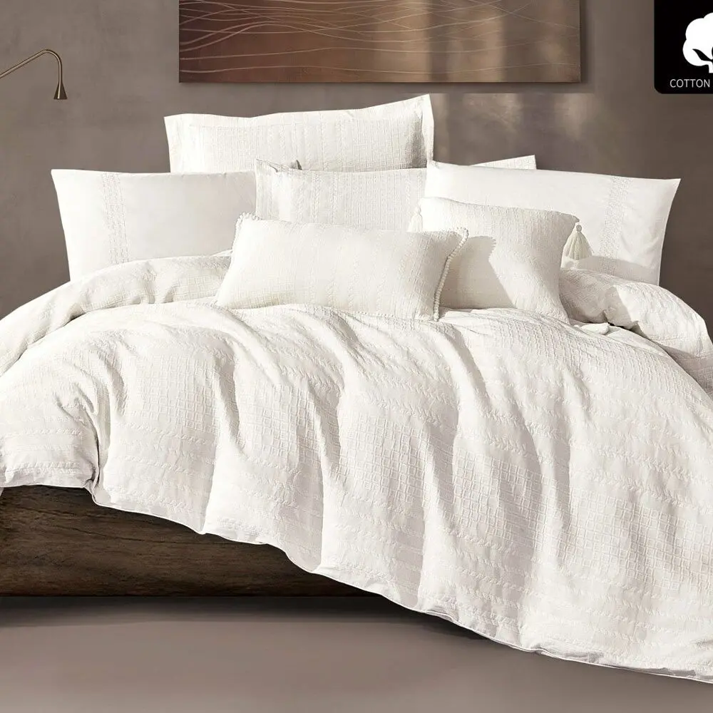 أنت تراجع:طقم لحاف مزدوج صيفي هالستات - 8 قطع - كريمي