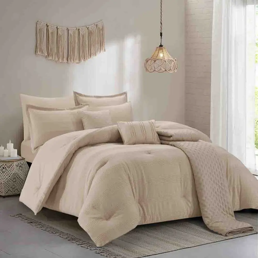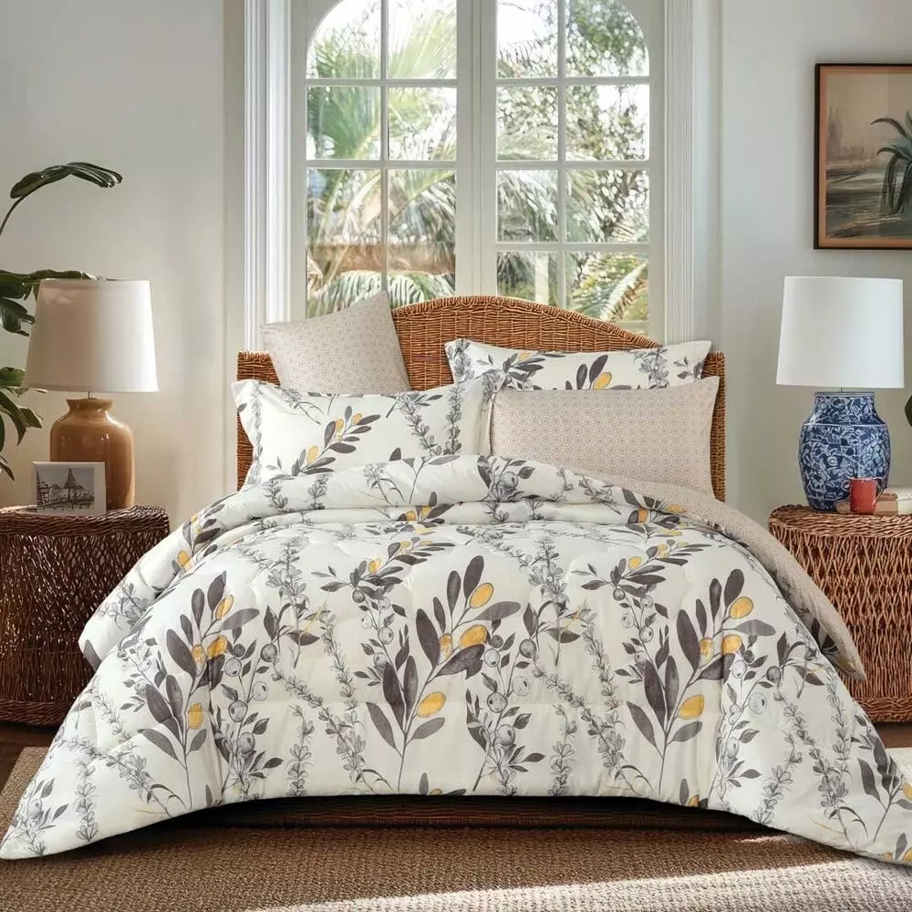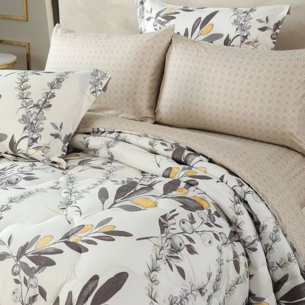 | يتضمن الطقم | 1 لحاف - 1 غطاء سرير - 1 شرشف مطاط - 4 غطاء وسادة - 1 خدادية مستطيلة - 1 خدادية |