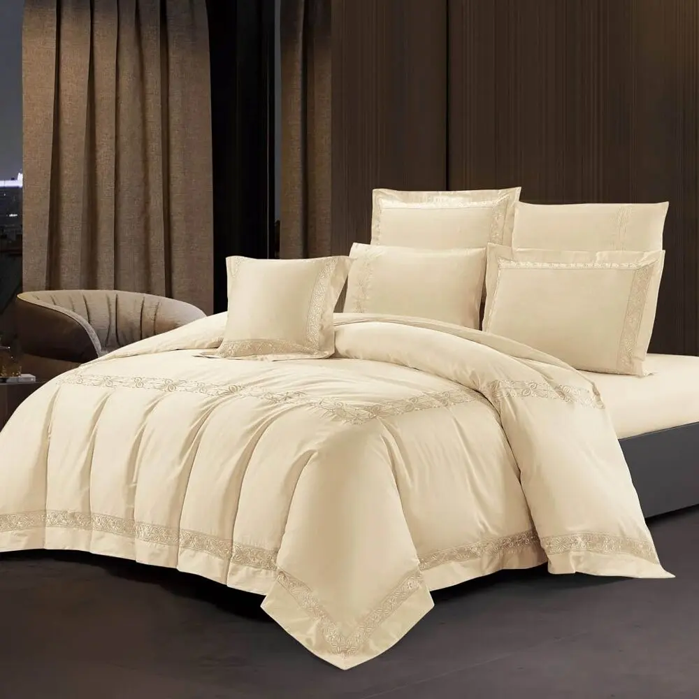 | يتضمن الطقم | 1 غطاء لحاف 1 حشوة لحاف 1 شرشف مطاط 2 غطاء وسادة بحواف 2 غطاء وسادة 1 خدادية 1 صندوق حافظ للحاف فقط |