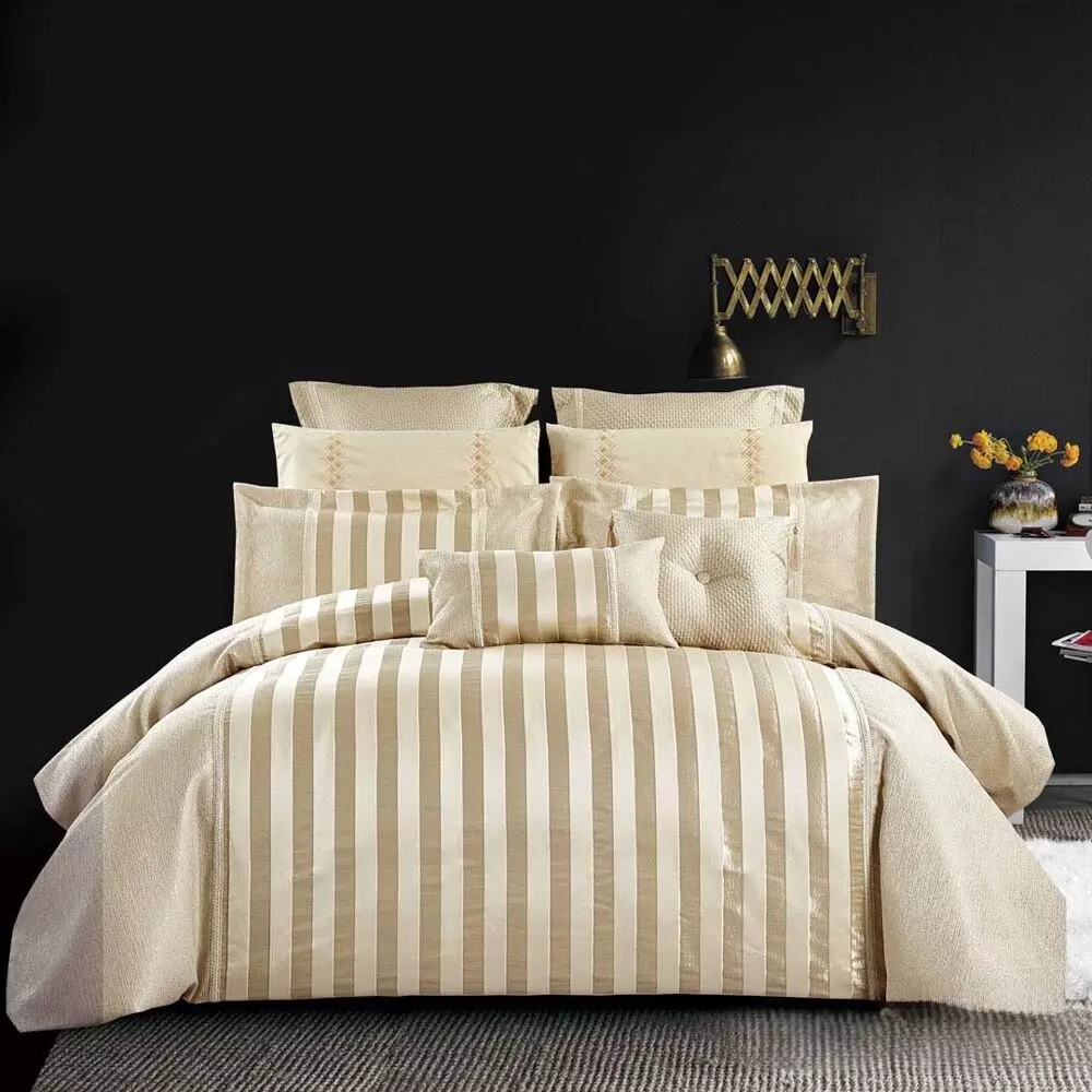 القياسات : اللحاف الطول : 270 سم العرض : 250 سم شرشف مطاط الطول : 200 سم العرض : 200 + 40 سم 2 غطاء وسادة الطول : 50 سم العرض : 75 + 5 سم 2 غطاء وسادة :الطول : 50 سم العرض : 75 سم مخدة ديكور : الطول : 45 سم العرض : 45 سم وسادة ديكور صغيرة : الطول : 60 سم العرض : 35 سم 2 غطاء خداديه مربعة طراز أوروبي : الطول : 60 سم العرض : 60+5 سم |