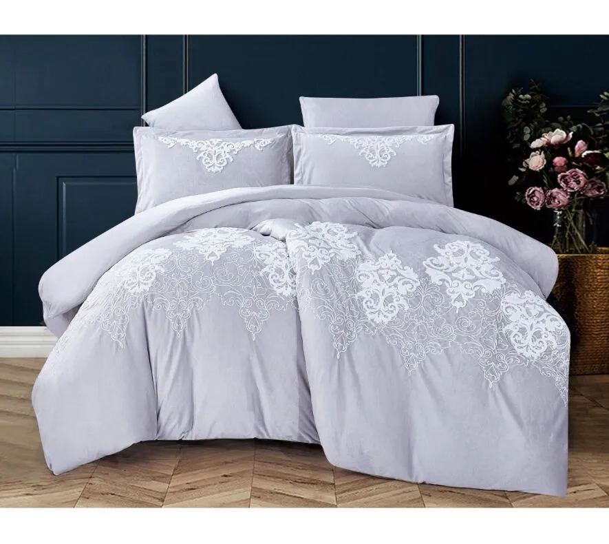 أنت تراجع:طقم لحاف مفرد مخمل جاكار كلاريس - 4 قطع - رصاصي