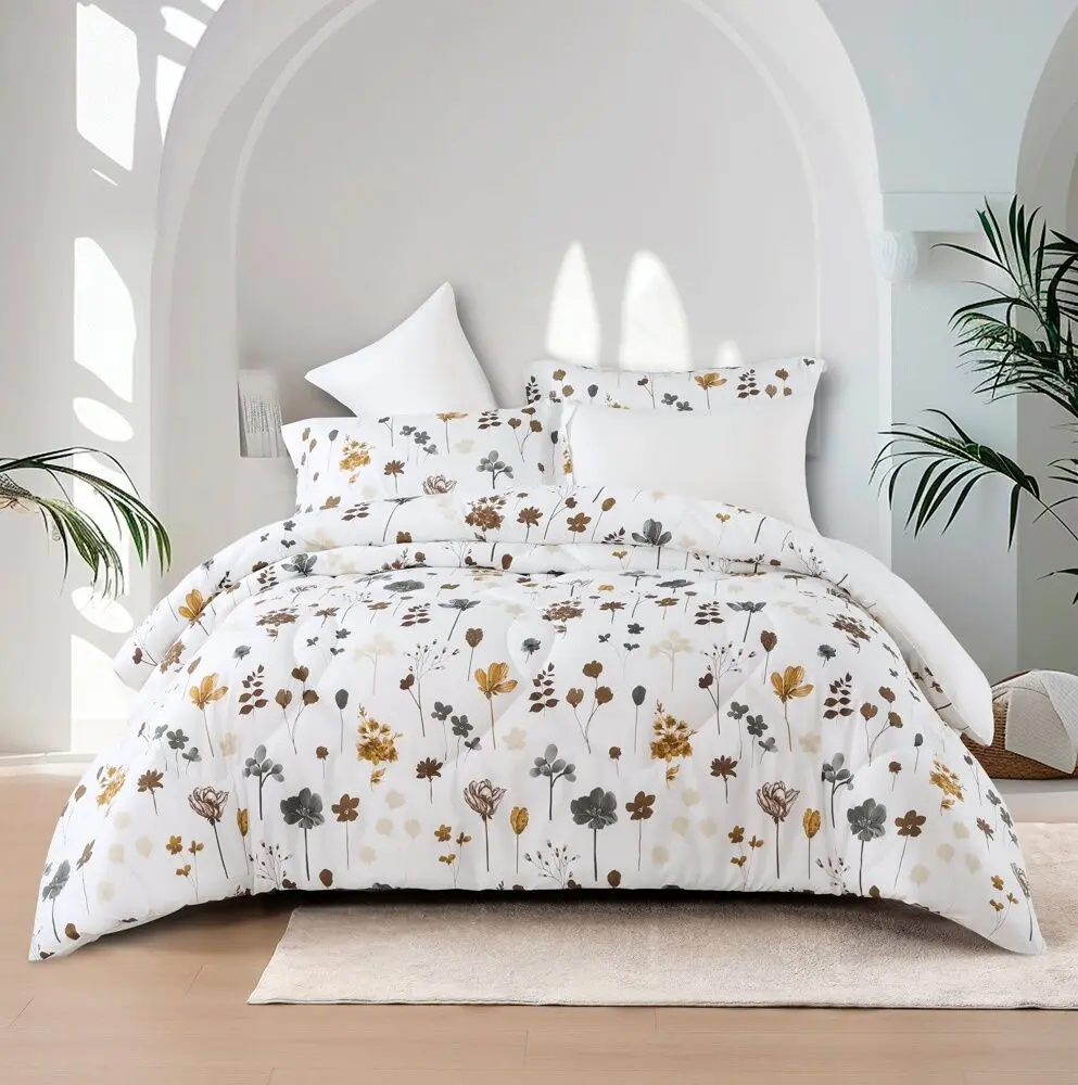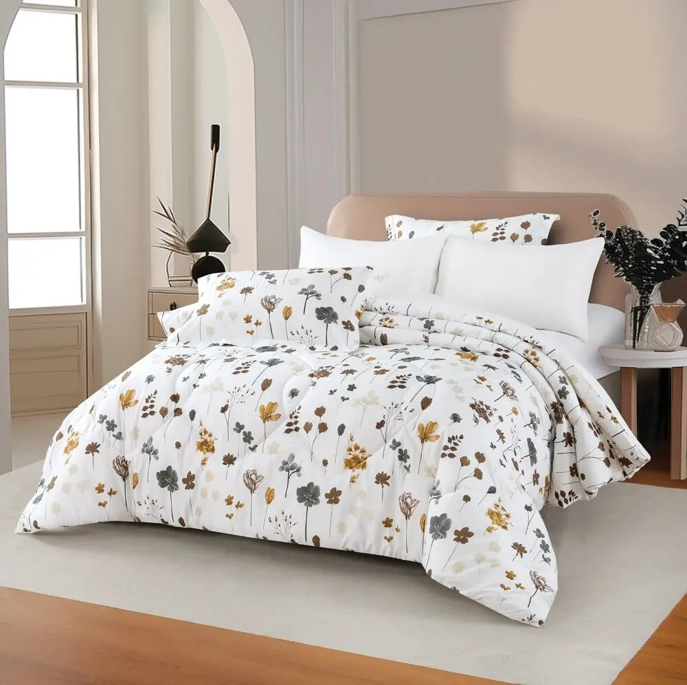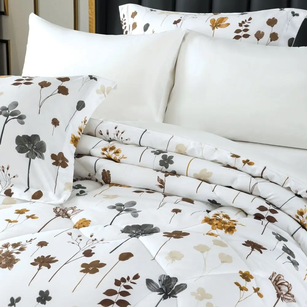 استمتع بنوم هانئ وأحلام سعيدة على ديزاير طقم لحاف صيفي مفرد ونص أبيض برسومات الزهور 4 قطع