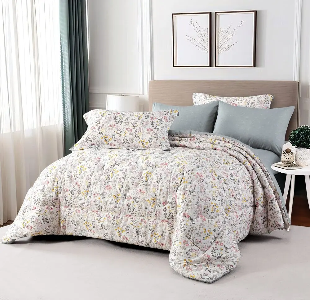 يتضمن الطقم 1 لحاف - 1 شرشف مطاط - 2 غطاء وسادة