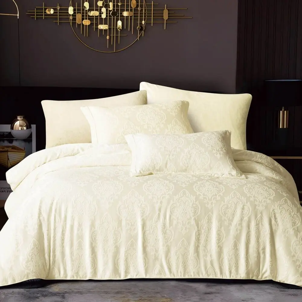 طقم لحاف ناتشورال شتوي كوين 200x150 سم مخمل جاكارد 4 قطع - كريمي
