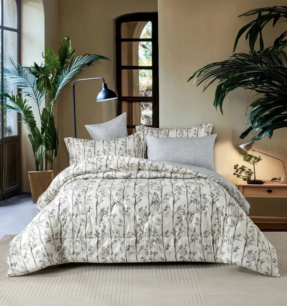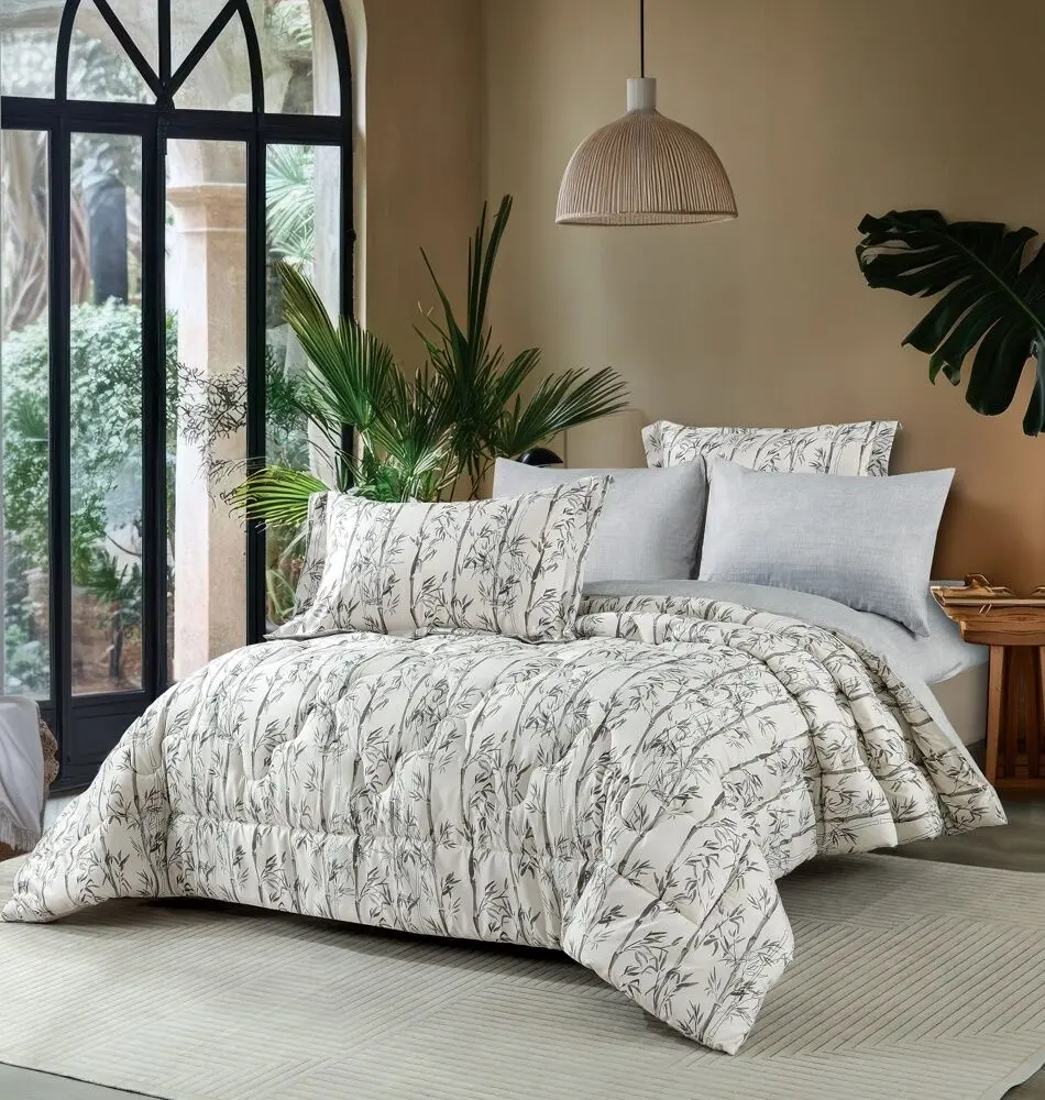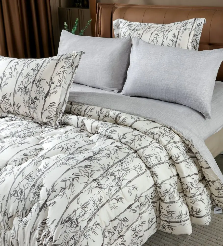 أنت تراجع:طقم لحاف نوفا صيفي مزدوج مشجر 6 قطع - أبيض و رمادي فاتح