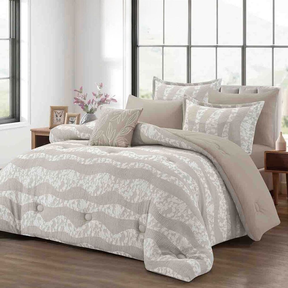 طقم لحاف ويفي صيفي كوين 4 قطع - بيج غامق